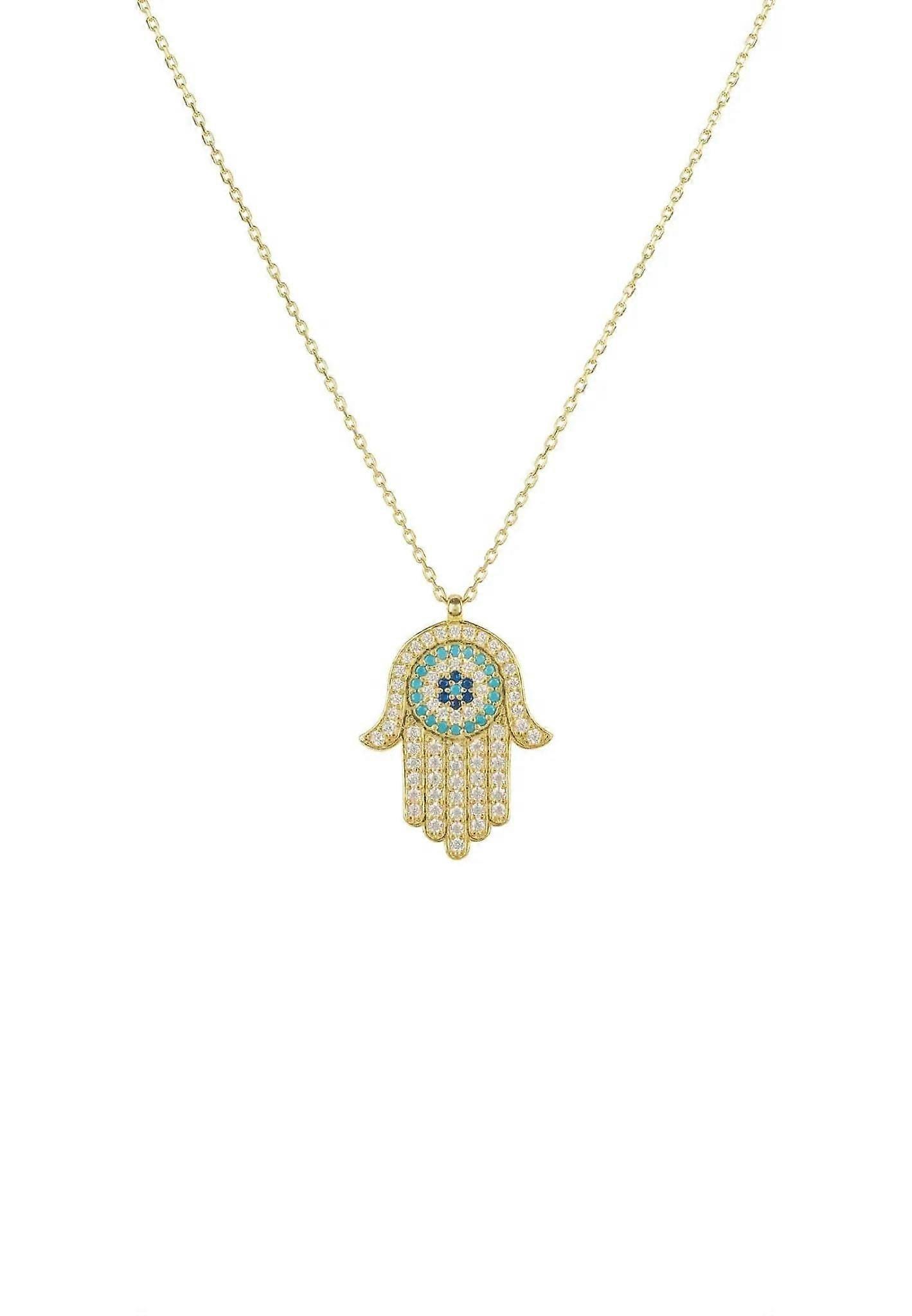 Latelita Women's Hamsa Hand Evil Eye Pendant Necklace in 22ct Gold - Adjustable Length 40-43cm