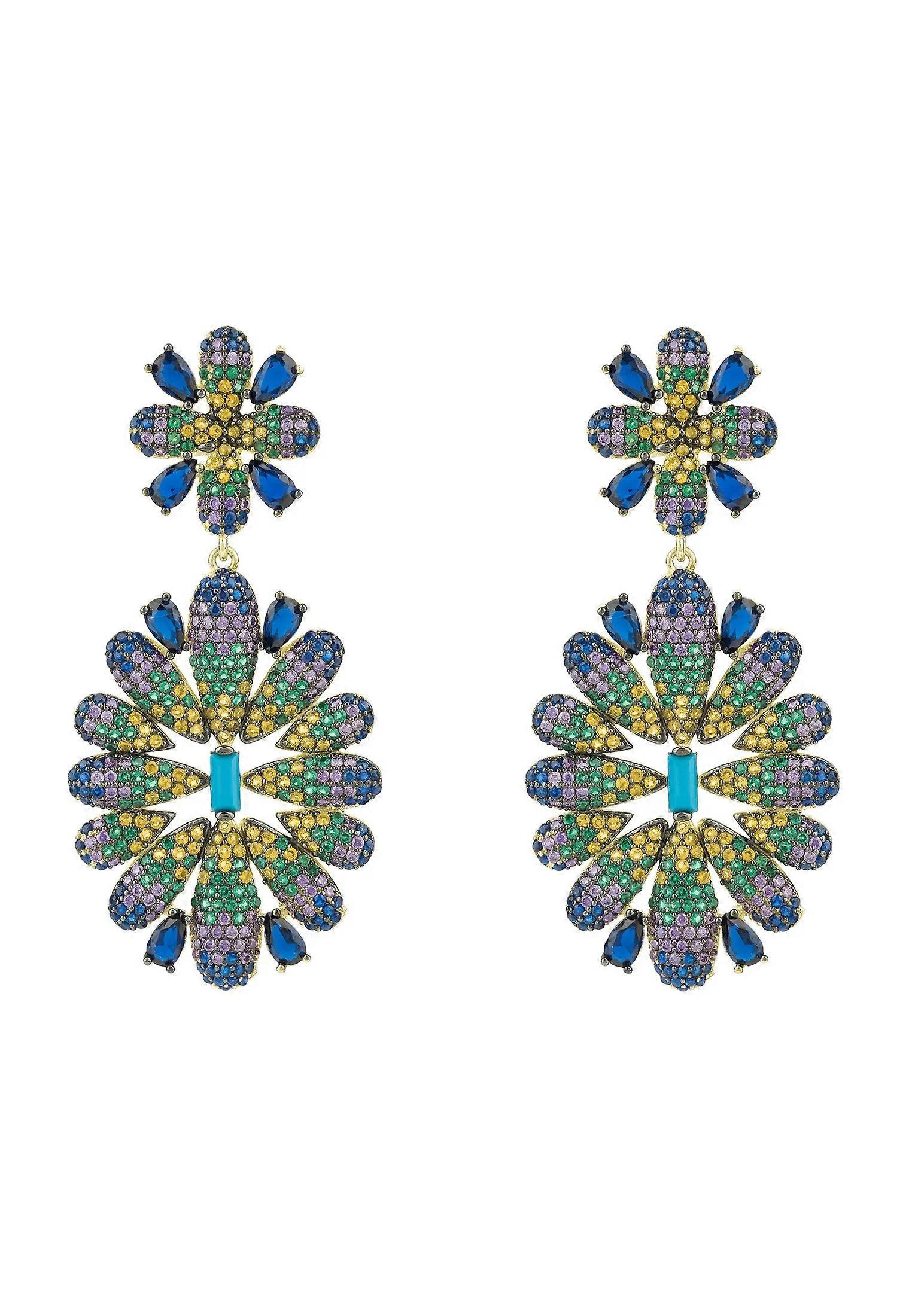 Latelita Women's Multi-coloured Flower Drop Earrings with Turquoise Gemstone - 925 Sterling Silver Dipped in 18k Gold