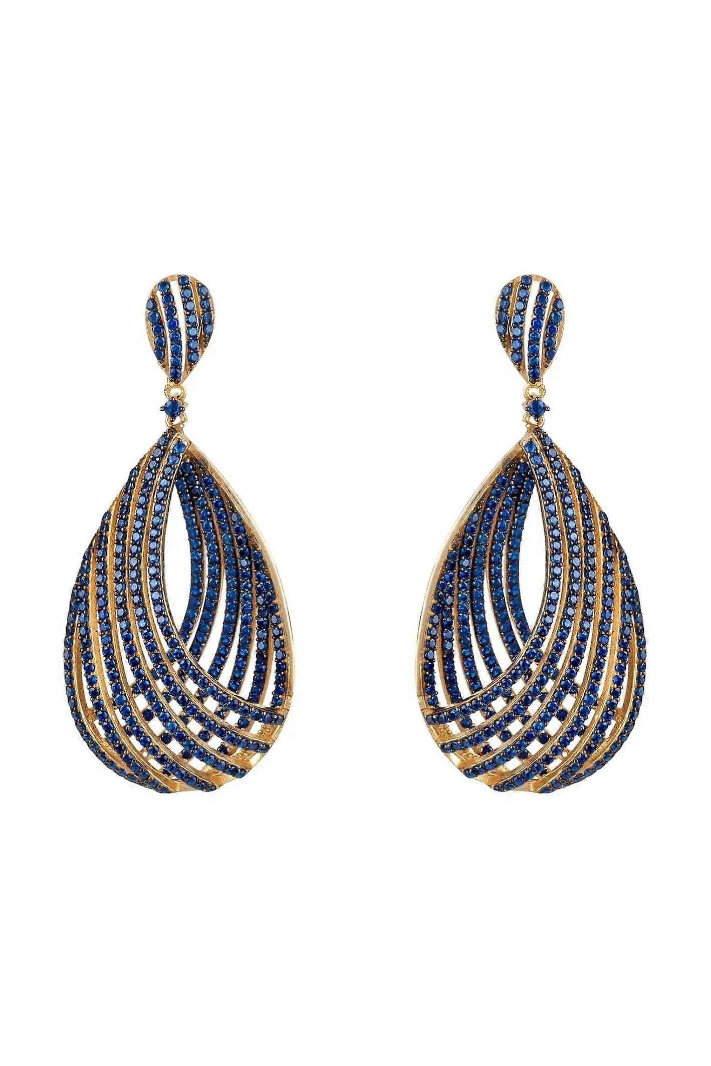Latelita Women's Sapphire Blue 925 Sterling Silver Vortex Teardrop Earrings with Zircon Detailing - 5.5cm