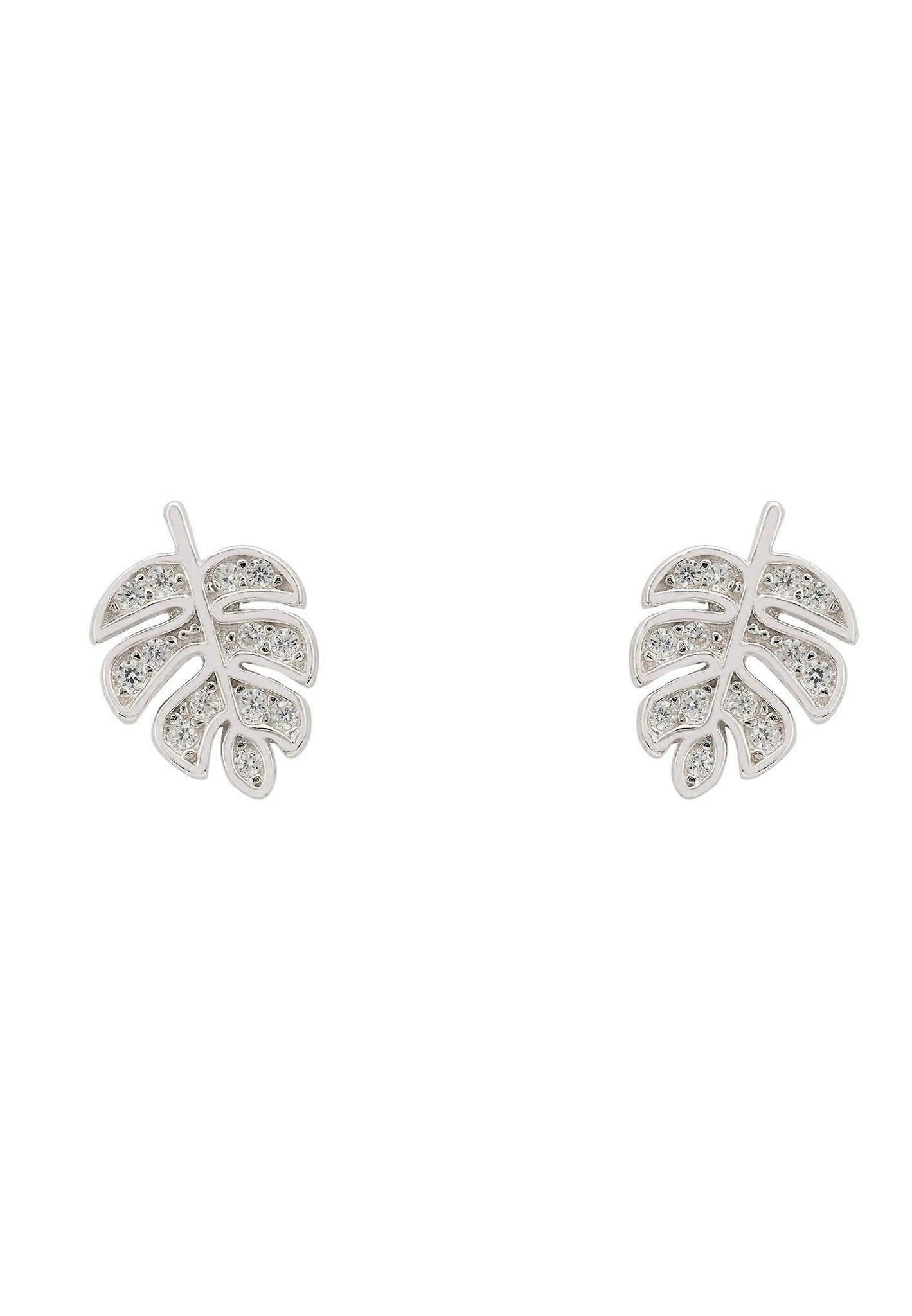 Latelita Women's Sterling Silver Palm Leaf Stud Earrings with Cubic Zirconia - 0.50 grams, 1.0cm x 0.8cm