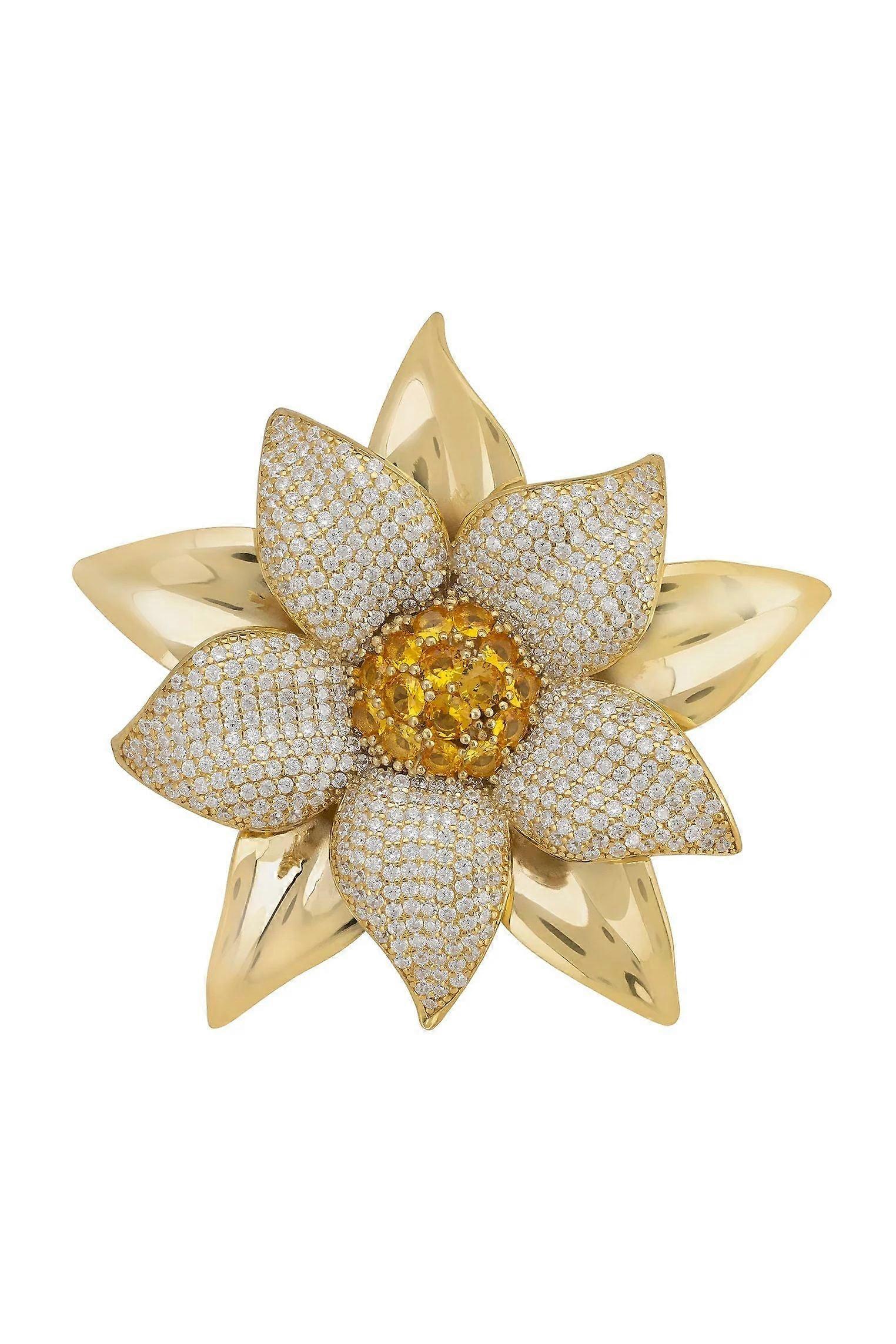 Latelita Women's White Gold Marguerite Daisy Flower Cocktail Ring with Cubic Zirconia and Yellow Zirconia Stones - Adjustable Fit