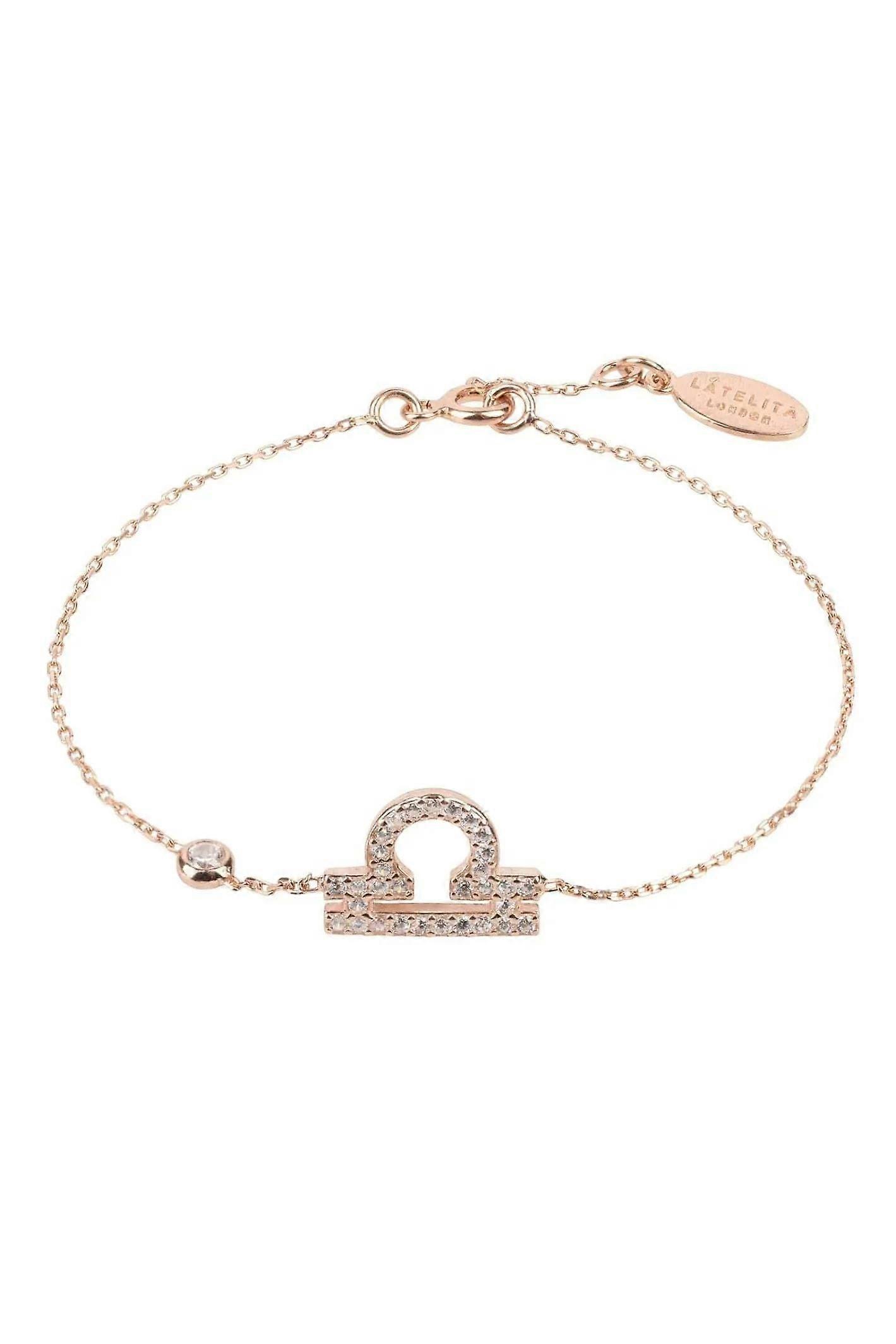Latelita Zodiac Horoscope Star Sign Bracelet Libra - Adjustable Silver Bracelet with Hand-Set Star Sign Motif and Multifaceted White Zirconia - Fits Wrist Sizes 14.5cm to 17cm