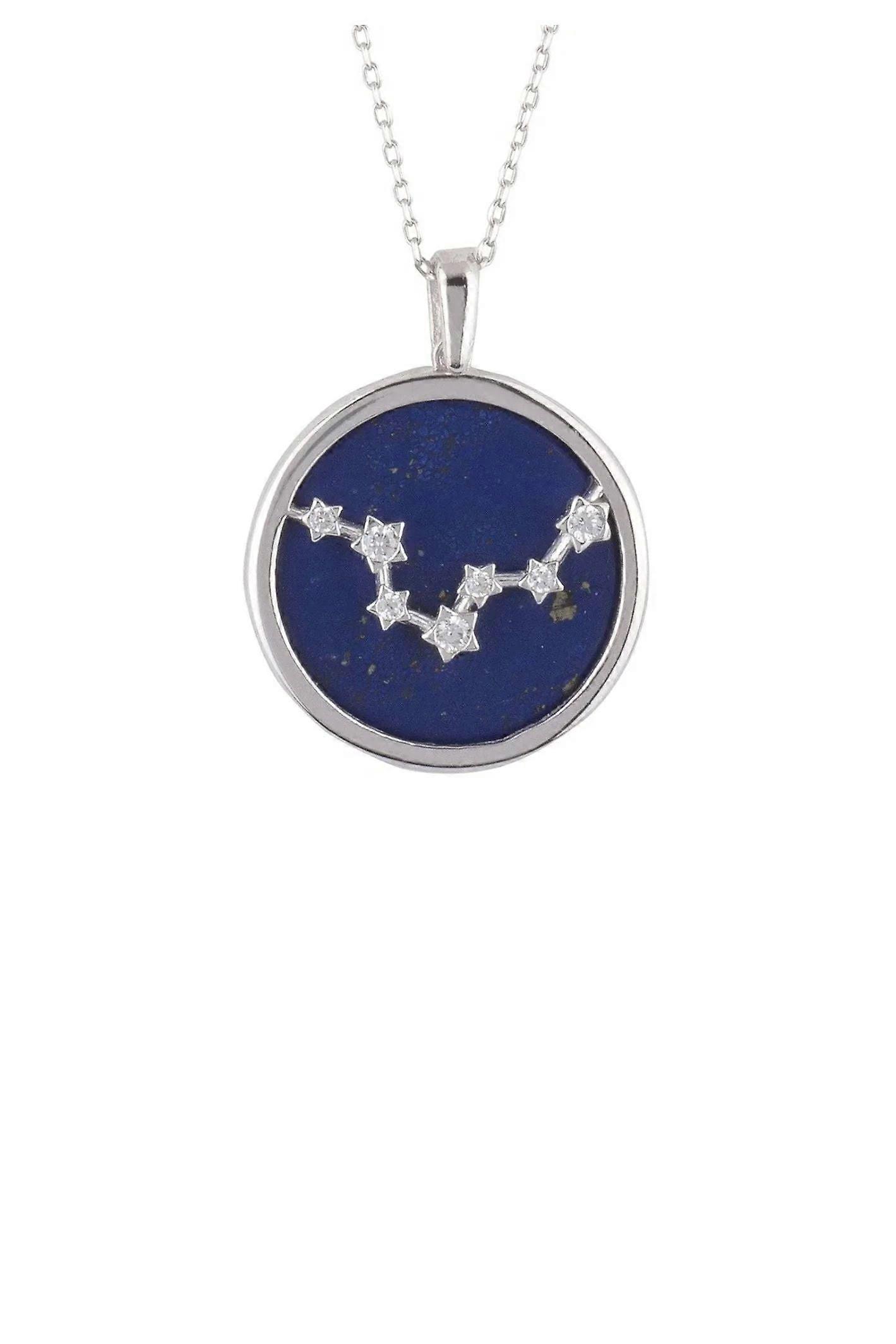 Latelita Zodiac Lapis Lazuli Gemstone Star Constellation Pendant Necklace for Women in Silver with Dark Blue Hue and White Cubic Zirconia Stars - Sign: Pisces