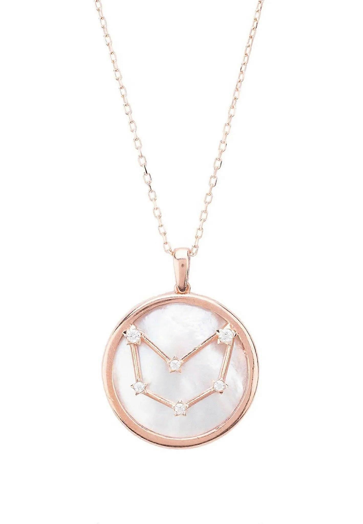 Latelita Zodiac Mother of Pearl Gemstone Star Constellation Pendant Necklace for Women, 22ct Rose Gold Dipped Sterling Silver, White Cubic Zirconia,