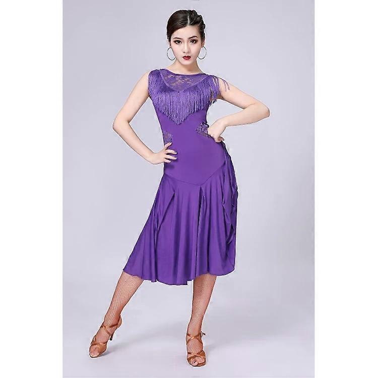 Latin Dance Dress-Sleeveless Fringed Competition Suit with Separate Bottoms -,Purple L Purple,L