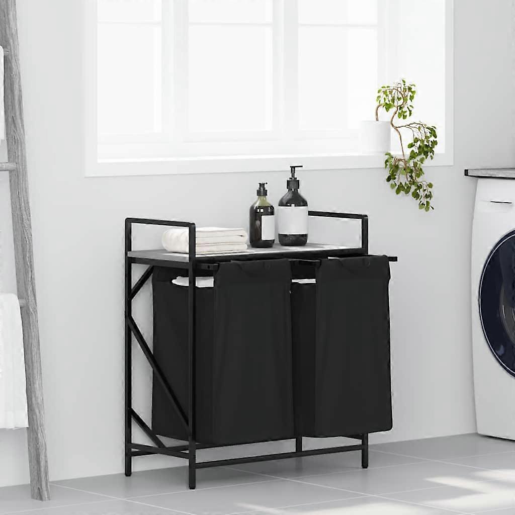 Wäschekorb 2 Fächer mit Ablage Grau Sonoma