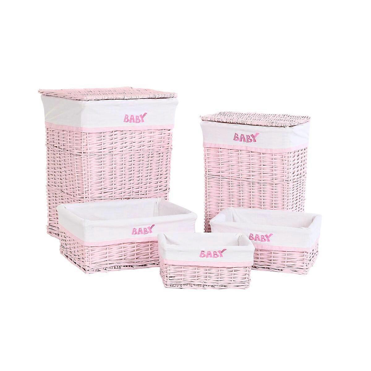 Laundry Basket DKD Home Decor Pink wicker Children's 44 x 34 x 56 cm 5 Pieces