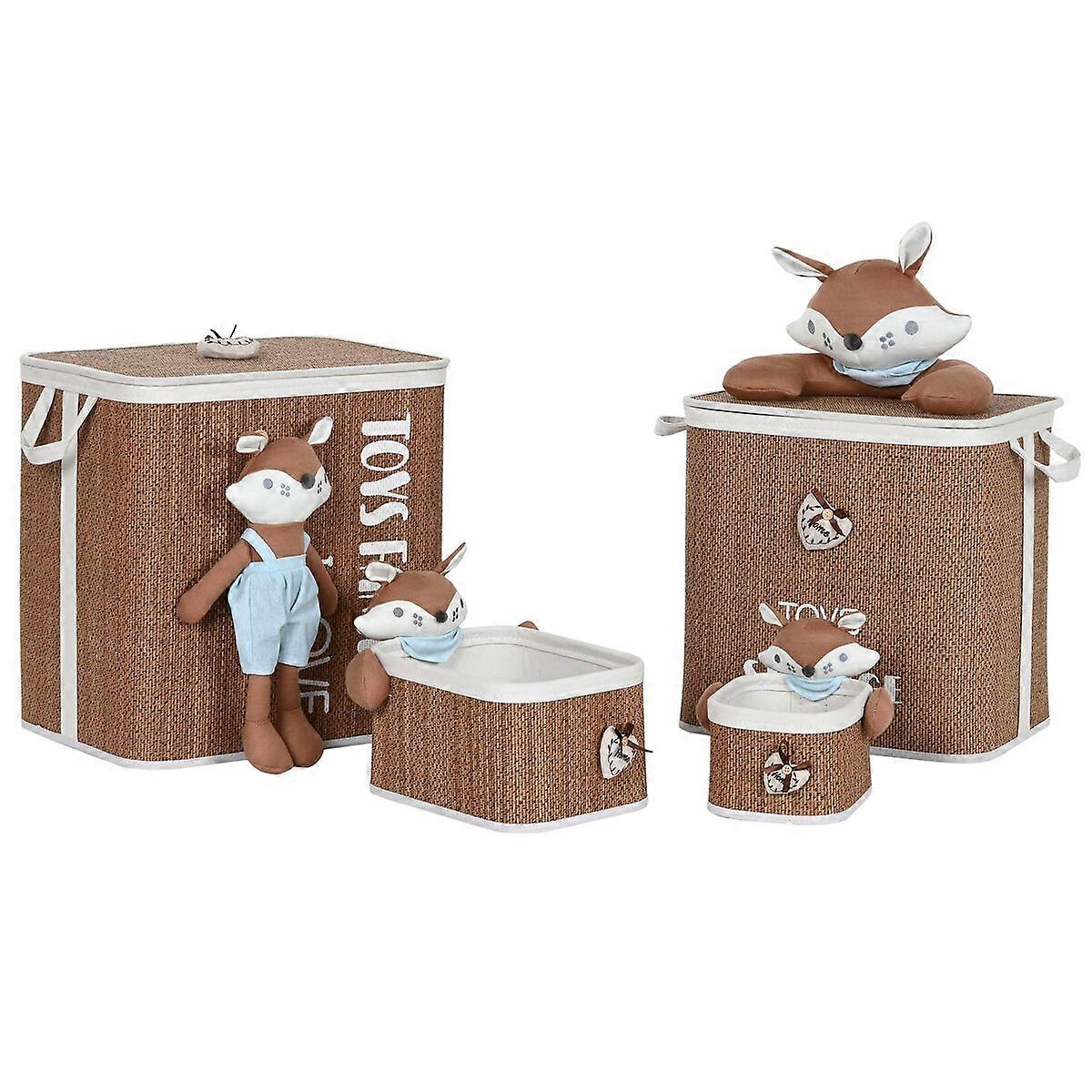 Laundry basket Home ESPRIT Blue Brown Natural Children's 44 x 44 x 45 cm 4 Pieces