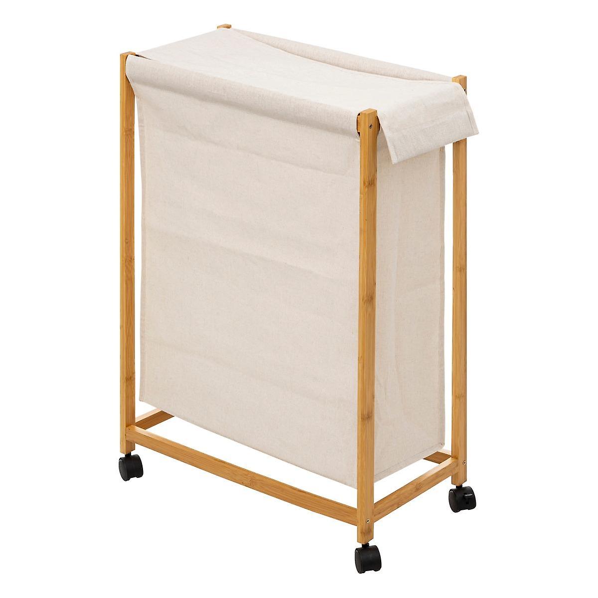 Skapa ordning i tvättstugan med denna eleganta och praktiska tvättkorg på hjul. Med en generös kapacitet på 52 liter och tillverkad av en hållbar blandning av bambu och polyester, kombinerar denna beige tvättkorg stil med funktionalitet. Dess dimensioner på 55 x 28 x 80 cm gör den rymlig nog för familjens alla tvättbehov samtidigt som den enkelt kan förflyttas tack vare de smidiga hjulen.