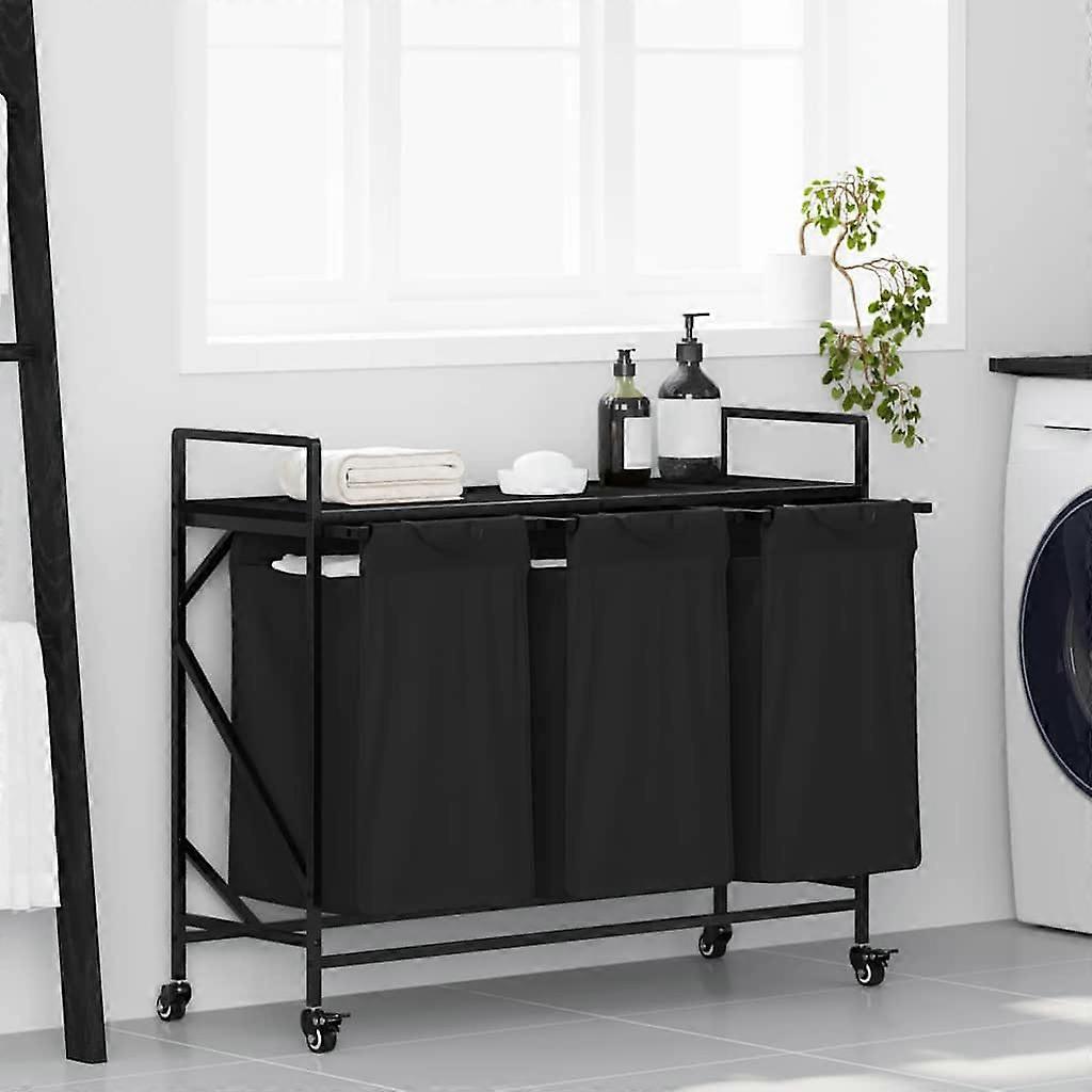 Wäschekorb 3 Fächer mit Rädern Schwarze Eiche