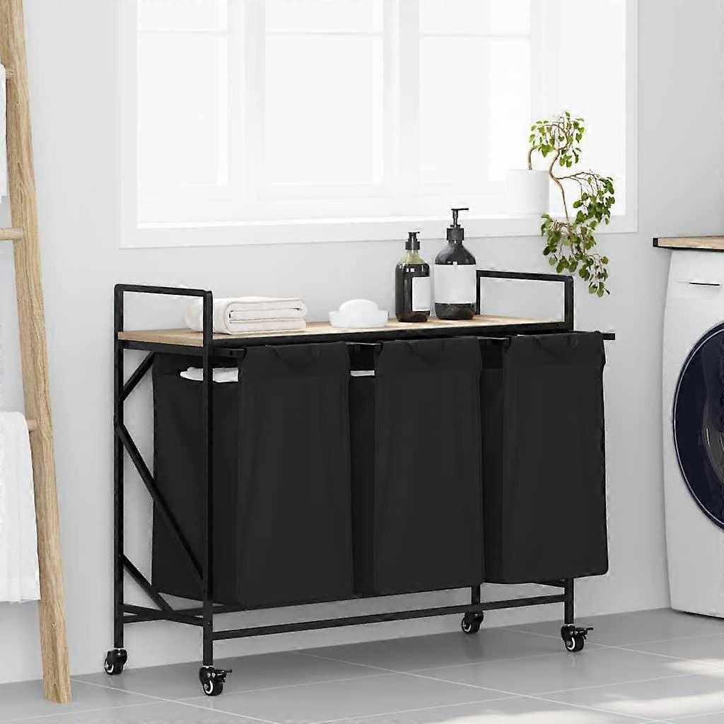 Wäschekorb 3 Fächer mit Rollen Sonoma Eiche
