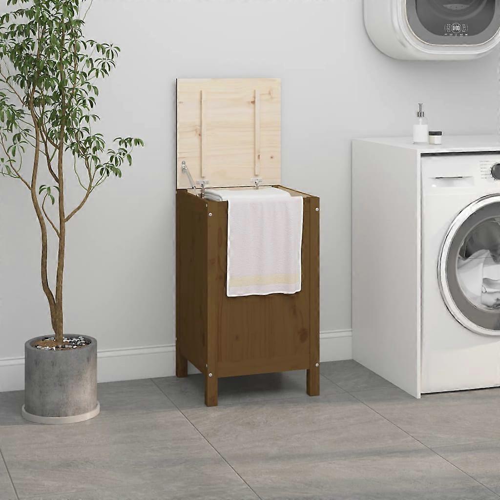 Wäschetruhe Honigbraun 44x44x76cm Massivholz Kiefer