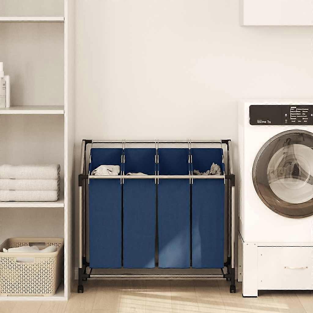 Wäschesortierer mit 4 Taschen Blau Stahl