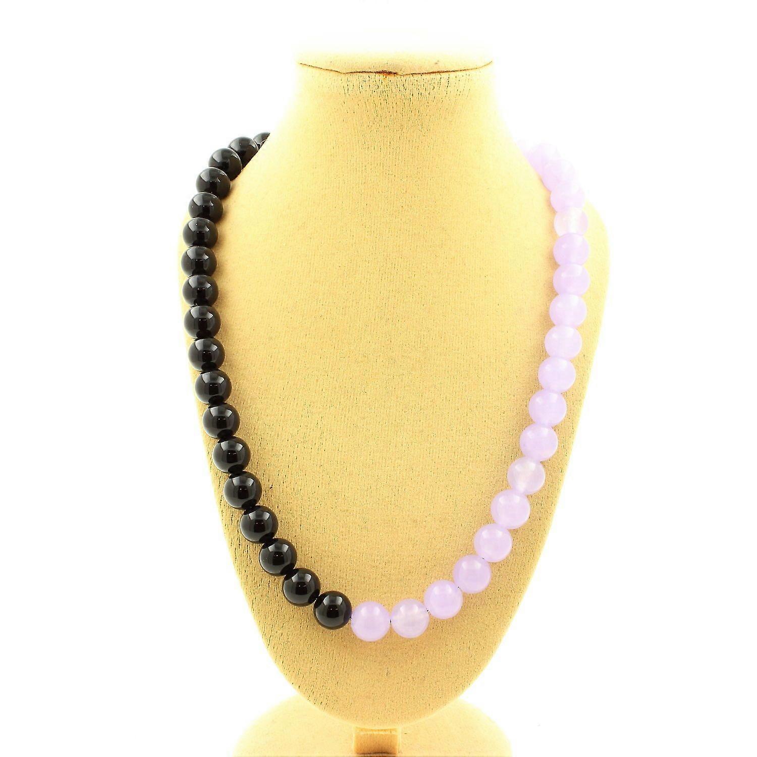 Lavender Chalcedony + Black Agate 8 mm beaded necklace Stainless steel chain