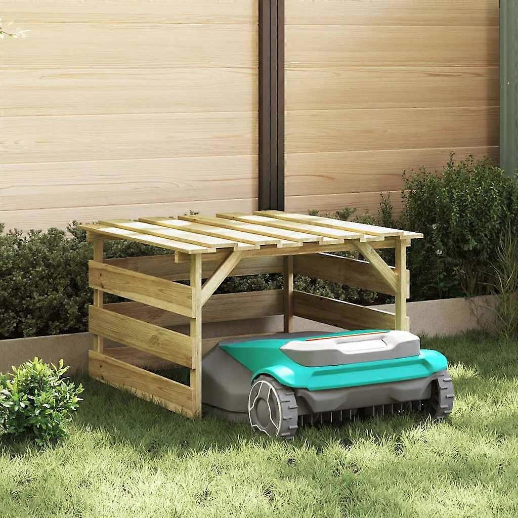 Diese Rasenmähergarage verbindet Praktikabilität mit charmantem Stil. Hergestellt aus imprägniertem Kiefernholz, fügt sie sich mit ihrem einzigartigen rustikalen Look perfekt in jeden Garten oder auf jede Terrasse ein. Sie schützt eure Roboter-Rasenmäher und wertet gleichzeitig den Außenbereich mit ihrem schönen Braunton auf, der toll mit Grün harmoniert. Material: Aus imprägniertem Kiefernholz, perfekt um gegen Wind und Wetter standzuhalten. Passt klasse in jeden Garten und hält die Geräte trocken Inklusive Komponenten: Die Garage bietet ein großes, rechteckiges Fach für euren Roboter-Rasenmäher und schützt ihn vor der Witterung. Robuste Bauweise: Toll für die Umwelt, die robuste Struktur hält auch bei rauem Wetter stand und sieht dabei noch gut aus. Vielseitig einsetzbar: Ideal für Garten und Terrasse, passt diese Garage überall hin und schützt eure Geräte. Praktisches Design für alle, die clevere Aufbewahrung suchen Pflege & Wartung: Kaum Wartung nötig Einfach regelmäßig checken und ein paar Schmutzreste abwischen. Die Imprägnierung sorgt dafür, dass das Holz lange hält und gut aussieht. Farbe: BraunMaterial: Imprägniertes KiefernholzGesamtabmessungen: 84 x 80 x 56 cm (L x B x H)LanglebigStauraumMontage erforderlich: Ja