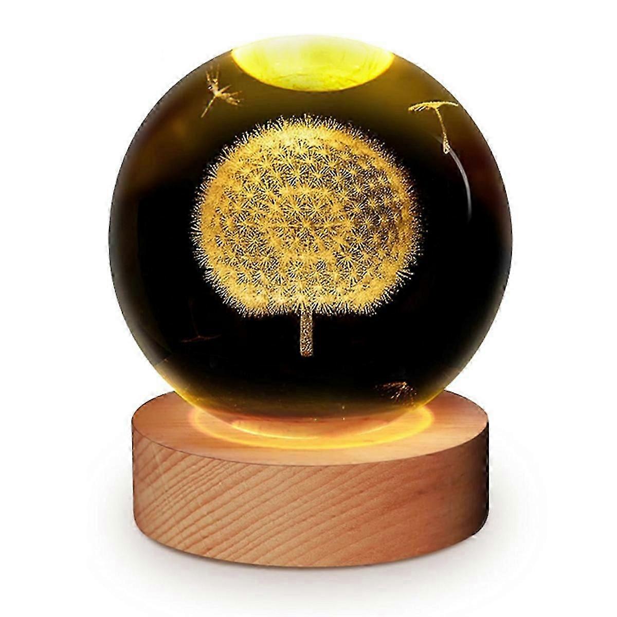 LED 3D Engraved Ball Night Light with LED Base USB Table Lamp for Bedroom Home Decor Gift for Women and Girls