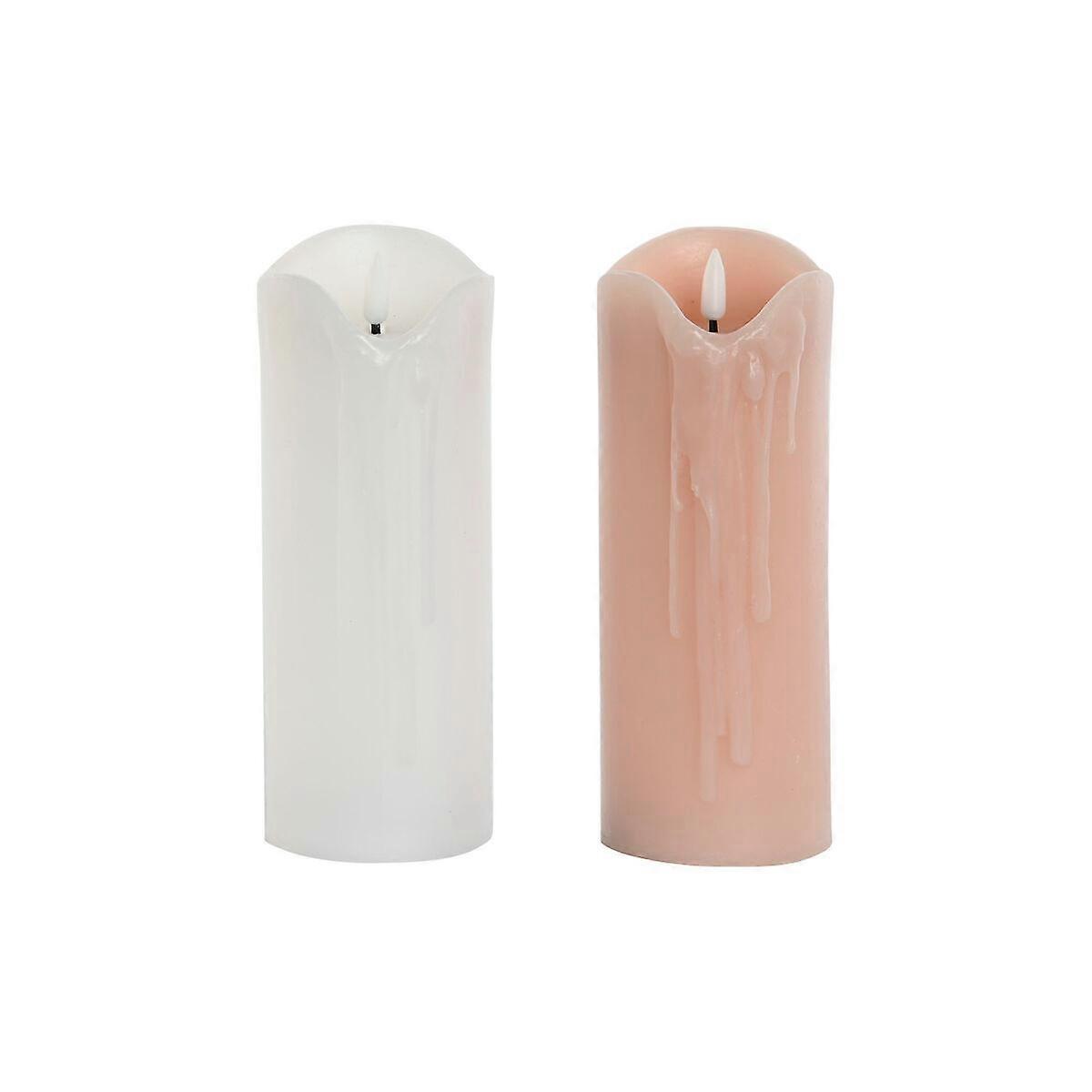 LED Candle DKD Home Decor White Light Pink 7.5 x 7.5 x 20 cm 7,5 x 7,5 x 20 cm (AA) (2 Units)