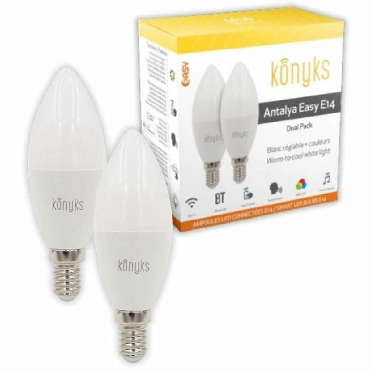 Die LED-Kerzenlampe Konyks Modell e14 ist ein intelligentes Beleuchtungsgerät, das eine vielseitige und effiziente Lösung für den privaten und professionellen Bereich bietet. Diese Lampe mit E14-Sockel arbeitet mit einer Leistung von 5 W und liefert einen Lichtstrom von etwa 350 Lumen, ausreichend, um jeden Raum klar und sanft zu beleuchten und dabei den Stromverbrauch gering zu halten. Besonders hervorzuheben ist ihre Fähigkeit, RGB-Licht zu erzeugen, mit dem sich eine breite Farbpalette wählen lässt, um die Atmosphäre je nach Stimmung oder Einrichtung anzupassen, sowie ein einstellbares weißes Licht zwischen 2700 K und 6500 K, das von warmen bis kalten Tönen reicht und verschiedene Umgebungen und Aktivitäten unterstützt. Die Wi-Fi- und Bluetooth-Konnektivität ermöglicht die Fernsteuerung über mobile Apps und die Integration mit Sprachassistenten wie Alexa und Google Home, sodass die Beleuchtung per Sprachbefehl oder von überall mit Internetzugang gesteuert werden kann. Das Kerzenformat verleiht ein klassisches und elegantes Design, ideal für dekorative Lampen und Räume, in denen Größe und Ästhetik wichtig sind. Zudem arbeitet die Lampe mit einer Spannung von 230 V und ist mit den meisten Standardstromnetzen kompatibel. Das 2er-Set kombiniert Energieeffizienz, technologische Funktionalität und farbliche Flexibilität in einem praktischen und modernen Produkt, das sich an verschiedene Beleuchtungs- und Smart-Home-Anforderungen anpasst. Zusammengefasst ist die LED-Lampe Konyks Antalya Easy E14 eine solide Wahl für alle, die funktionale, anpassbare und smarte Beleuchtung suchen.