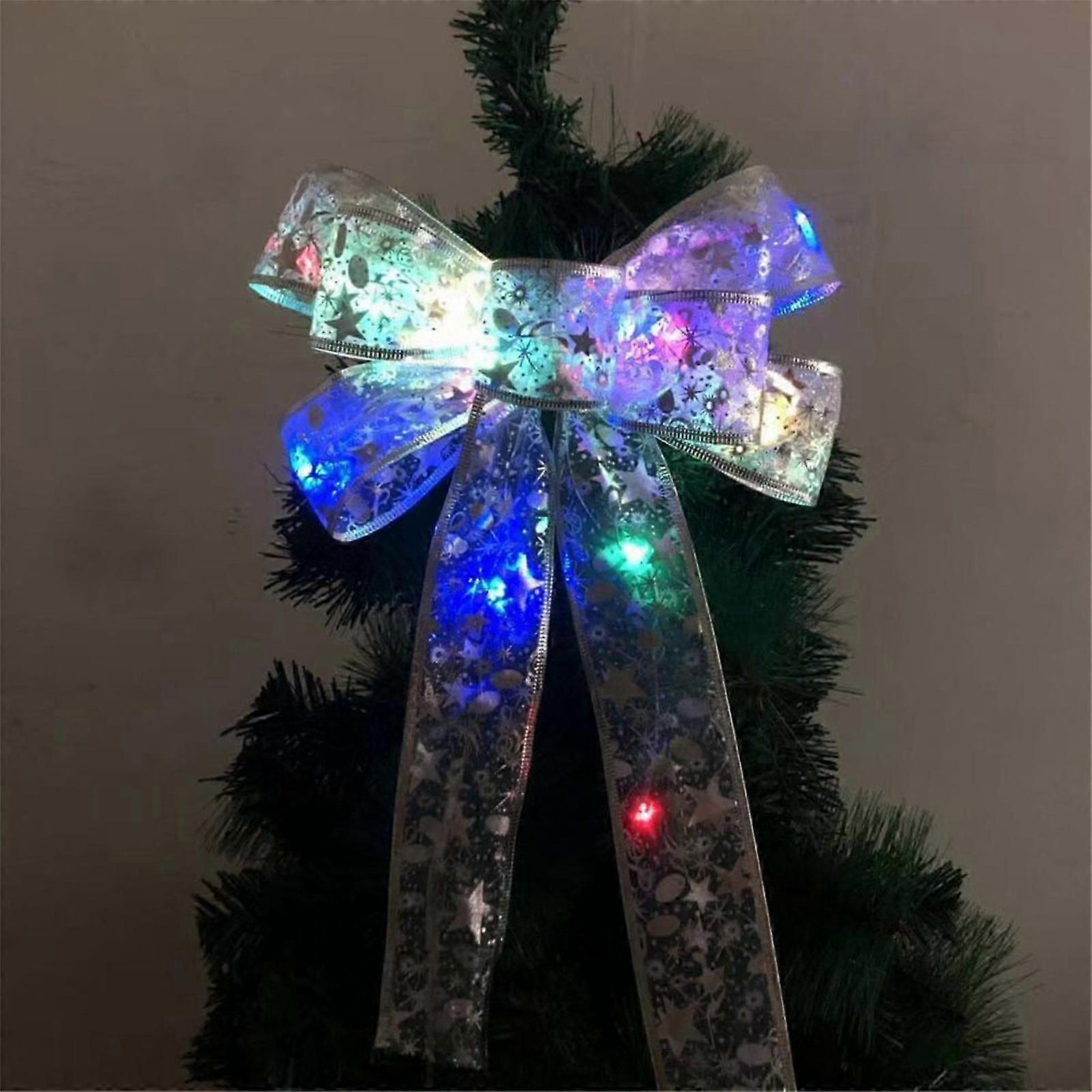 LED Christmas Tree Ornaments Ribbon Bows For Home Christmas Tree Wreaths Decor Holiday Ornaments