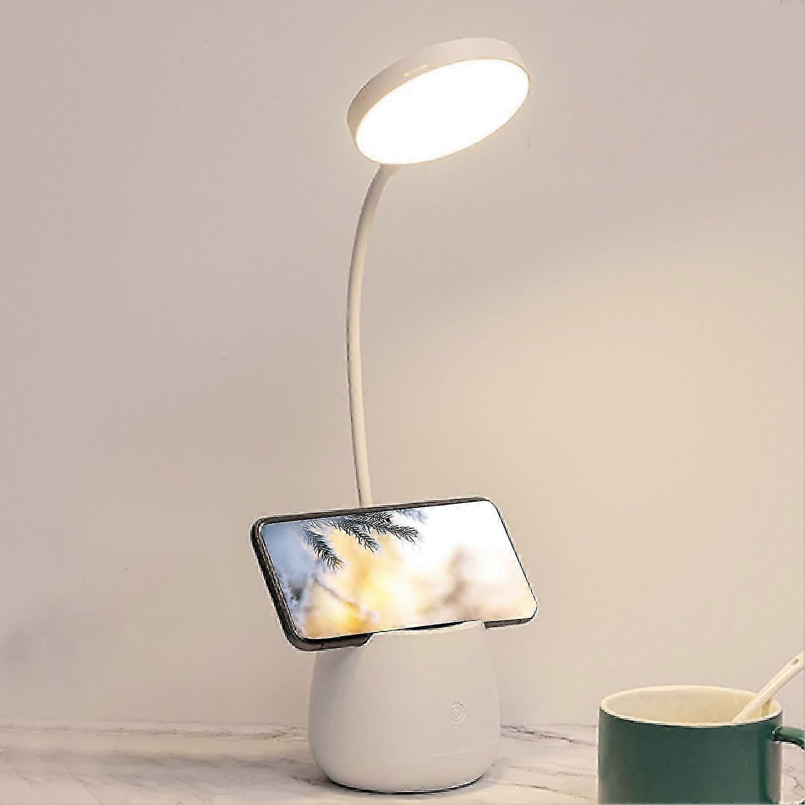 LED Desk Lamp High Brightness Eye Protective USB Rechargeable Bedside Lamp Phone Holder for Bedroom White