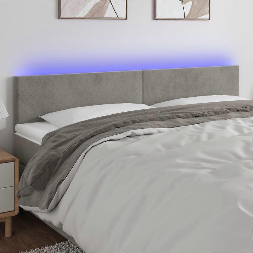 LED Kopfteil Hellgrau 200x5x78/88 cm Samt