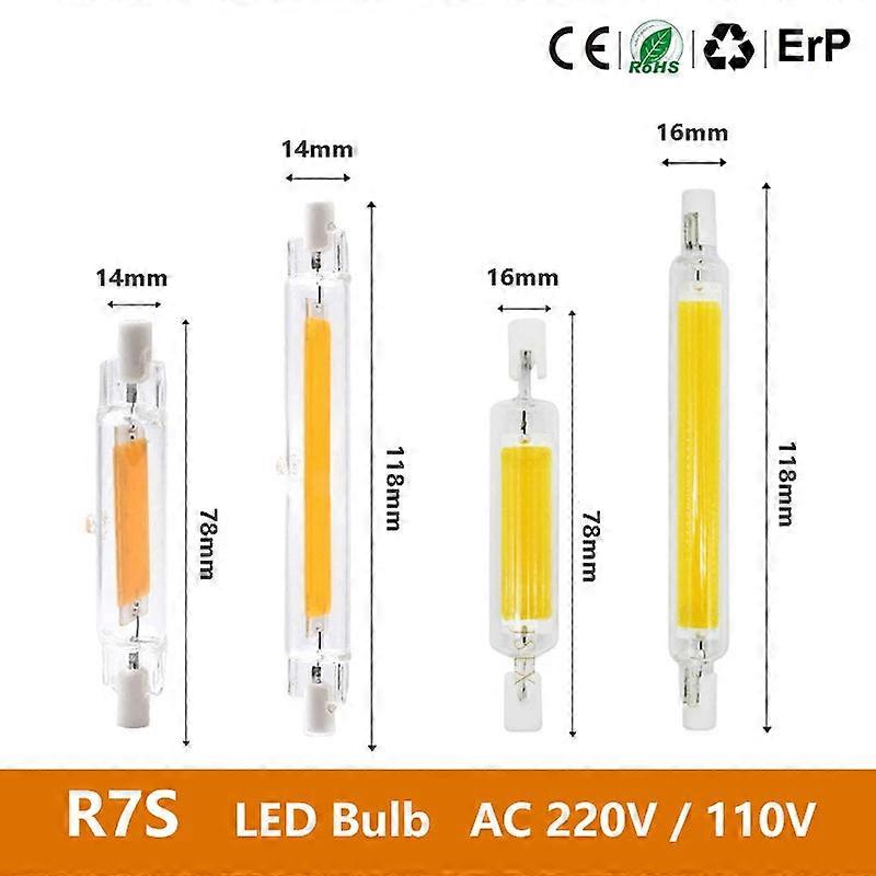 Led R7s Cob Bulb Light 78mm/118mm Glass Tube High Power Ac110v/220v Home