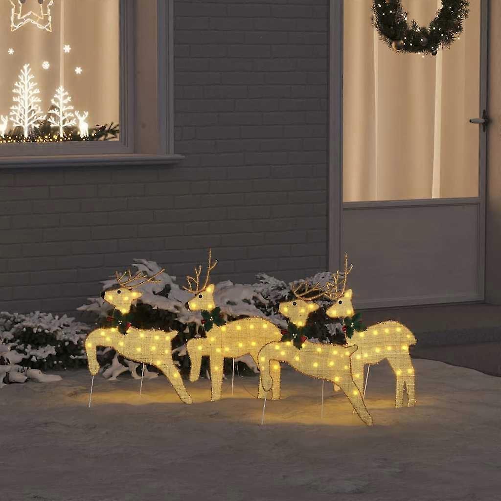 Dieses moderne Weihnachtsren bringt Charme und Wärme in jeden Raum. Stilvoll gestaltet, verbindet es die klassische Weihnachtsästhetik mit modernen Akzenten und wird zum perfekten Mittelpunkt deiner Feiertagsdeko. Seine elegante Form und die feinen Details schaffen eine einladende Atmosphäre, die Familie und Freunde in den festlichen Geist zieht. Ideal für drinnen oder draußen, zeigt dieses vielseitige Rentier deine Feiertagsfreude in deinem Wohnzimmer, Garten oder auf der Terrasse. Die sanften LED-Lichter sorgen nicht nur für eine hübsche Beleuchtung, sondern schaffen auch eine gemütliche Stimmung bei jeder Feier. LED-Lichtquelle Das Weihnachtsren hat dekorative LED-Lichterketten, die sein Design wunderbar betonen und eine magische Atmosphäre schaffen. Die LED-Technologie ist energieeffizient und sorgt für langanhaltende Beleuchtung über die Feiertage, ohne dir Sorgen über den Stromverbrauch zu machen. USB-Stromquelle Die praktische USB-Stromquelle ermöglicht dir, das Rentier problemlos an verschiedene Stromquellen anzuschließen, sei es ein Laptop oder eine Powerbank. Das macht es super flexibel, besonders wenn du nicht viele Steckdosen hast oder es einfach woanders hinstellen möchtest. Akzentmuster Die kreativen Muster auf dem Rentier heben besondere Merkmale hervor und sorgen für eine ansprechende Tiefe. Diese Details steigern nicht nur die festliche Ausstrahlung, sondern machen es auch zu einem herausragenden Dekostück für die Feiertage. Künstlerischer Stil Dieses Rentier vereint traditionelle Kunst mit modernen Elementen. Sein Design bringt festliche Motive mit einem zeitgenössischen Touch zusammen. Die Mischung aus Alt und Neu macht es zeitlos und ansprechend für alle, die die Feiertage mit Tradition und Innovation genießen. Pflegehinweise Bewahre den tollen Look des Rentiers mit einfachen Pflegehinweisen: Ideal für drinnen, nach den Feiertagen an einem kühlen, trockenen Ort lagern, um es lange schön zu halten. Mit diesen einfachen Schritten bleibt dein Rentier Jahr für Jahr ein echter Hingucker, ohne viel Aufwand bei der Pflege. Farbe: GoldMaterial: StoffGesamtabmessungen: 45 x 19 x 65 cm (L x B x H)Lichttyp: Dekorative LichterkettenStromquelle: USBLanglebigInnen- / Außenbereich: Verwendung im Innenbereich und geschützten AußenbereichLieferumfang:2 x Rentier: 45 x 19 x 65 cm (L x B x H)2 x Rentier: 44 x 18 x 58 cm (L x B x H)Montage erforderlich: Ja Dieses Produkt wird mit 5 V Gleichstrom betrieben, aber die zertifizierte 5-V-USB-Stromquelle ist nicht im Lieferumfang enthalten. Eine höhere Spannung kann zu einer Überhitzung führen und das Gerät beschädigen sowie das Risiko von Überhitzung und Brand verursachen.