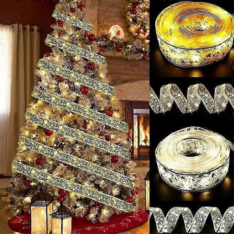 LED Ribbon Christmas Tree Lights: Elevate your holiday decor with these stunning LED ribbon Christmas tree lights. They add a touch of magic and charm to your festive celebrations.Xmas Tree Top Ribbon Bows: Designed as elegant ribbon bows, these lights are perfect for topping your Christmas tree. They bring a touch of sophistication and festivity to the tree's crown.Versatile Party Ornament: Beyond tree toppers, these LED ribbon lights can be used as versatile party ornaments. They enhance the atmosphere of your gatherings, creating a warm and welcoming ambiance.Easy-to-Use Decoration: With user-friendly design, these lights are easy to install and operate. Their convenience makes decorating your tree or party space a breeze, saving you time and effort.Dazzling Festive Illumination: These LED ribbon lights not only adorn your tree or party area but also provide dazzling illumination. They add sparkle and glow, creating a captivating and magical atmosphere for your celebrations.Note: Batteries are not included in the package