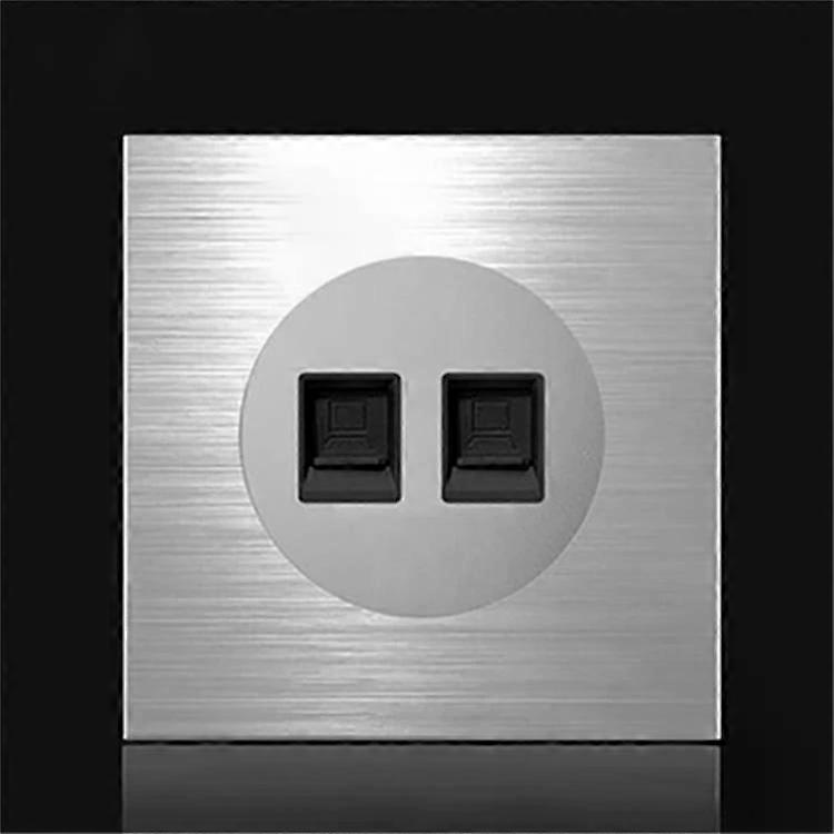 LED Switch Panel-86mm Gray Aluminum,Dual Computer Socket -