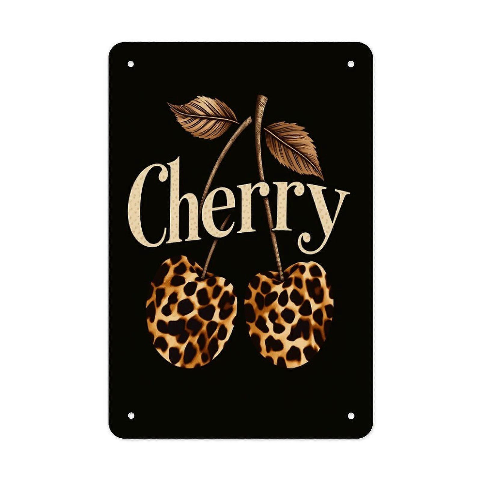 Leopard Print Cherry Metal Poster Wall Decoration for Home Bedroom Bold Style Tin Sign