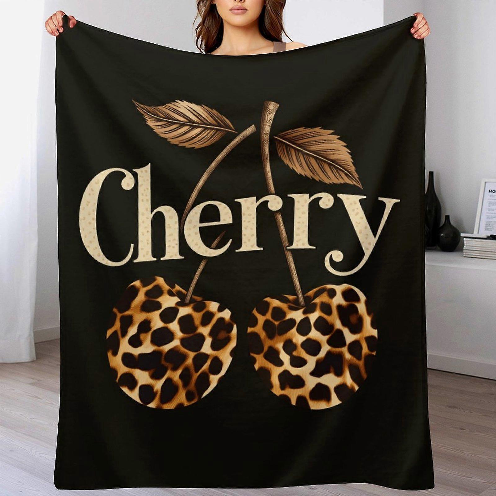 Leopard Print Cherry Text Print Flannel Blanket - Cozy Warm Throw | Trendy Decor for Fashion Enthusiasts