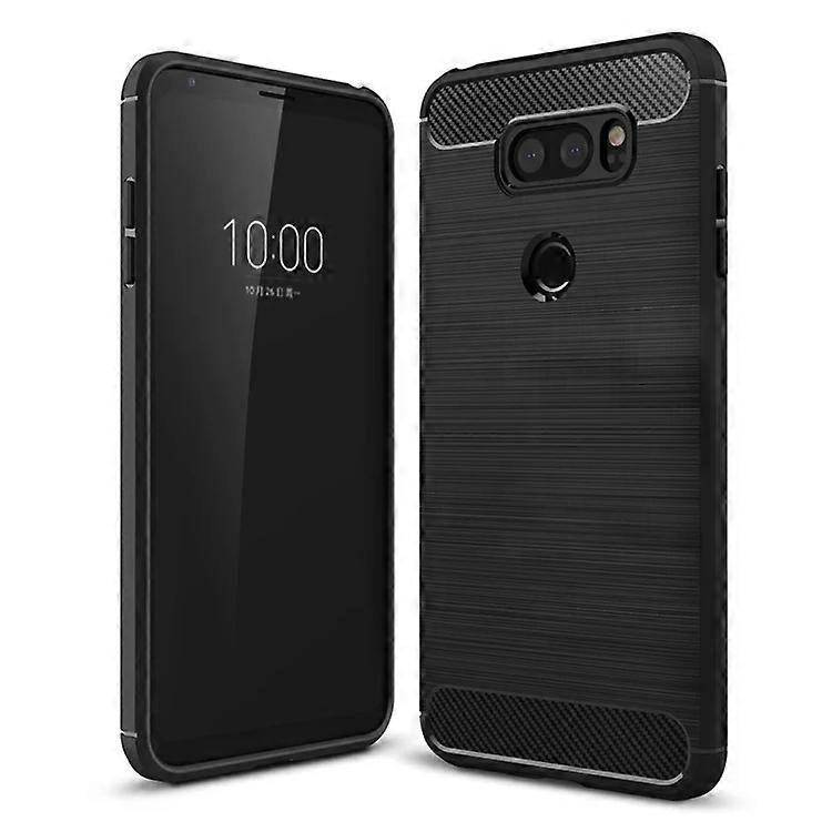 LG V30 Rugged Armor Case-Shockproof TPU,Brushed Carbon Fiber,Black Black