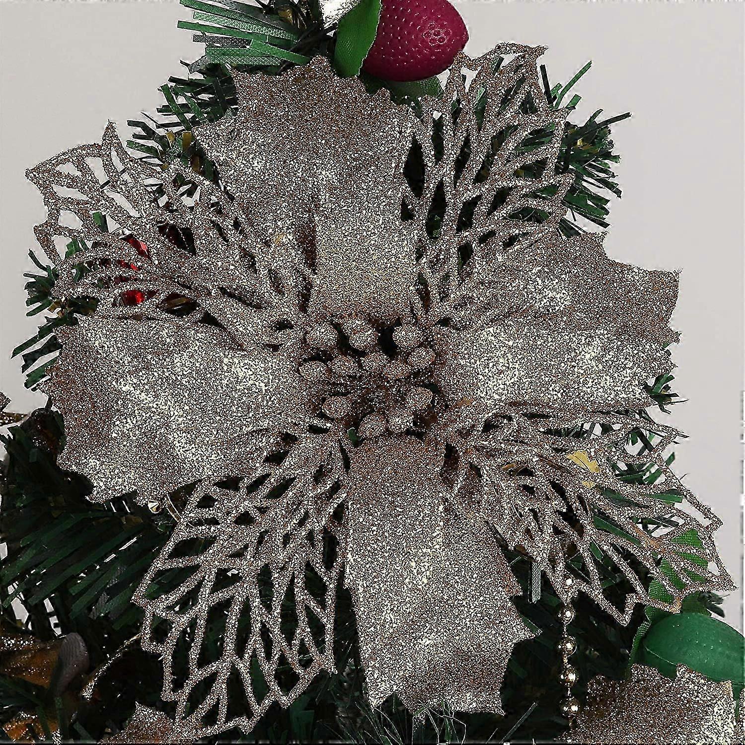 Liangnv 10 Pcs Christmas Glitter Poinsettia Flowers Picks Christmas Tree Ornaments 6" Wide for Xmas Tree Wreaths Garland Holiday Seasonal Wedding Deco