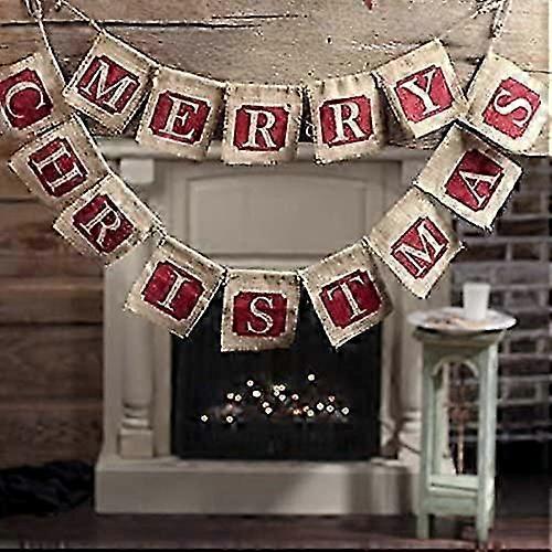 Liangnv Merry Christmas Jute Burlap Banners Garlands for Christmas Holiday Decoration