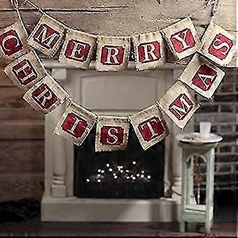 Liangnv Merry Christmas Jute Burlap Banners Garlands for Christmas Holiday Decoration
