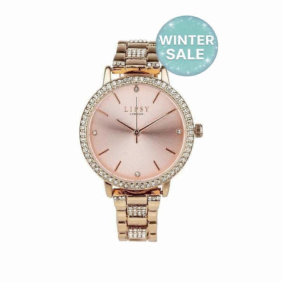 Lipsy Rose Gold Bracelet Rose Gols Sunray Dial Stone Set Bezel Watch LP973