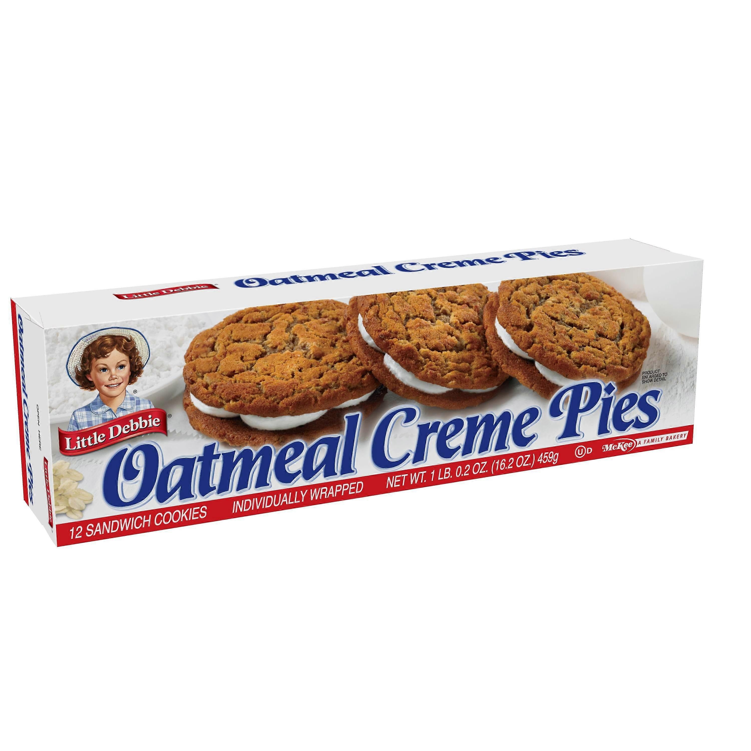 This is the Little Debbie snack that started it all Oatmeal Creme Pies have been satisfying families since 1960 as the very first snack baked under the Little Debbie brand name. Whole grain oats, molasses, and irresistible creme filling combine to create this classic treat. Available in single serve, family packs, and big packs, there’s a size for everyone Whether you like your OCP with a scoop of ice cream, a tall glass of milk, a warm mug of hot chocolate, or fresh from the freezer, Oatmeal Creme Pies are available year round. UPC: 024300041013 Weight: 1.38 lbs