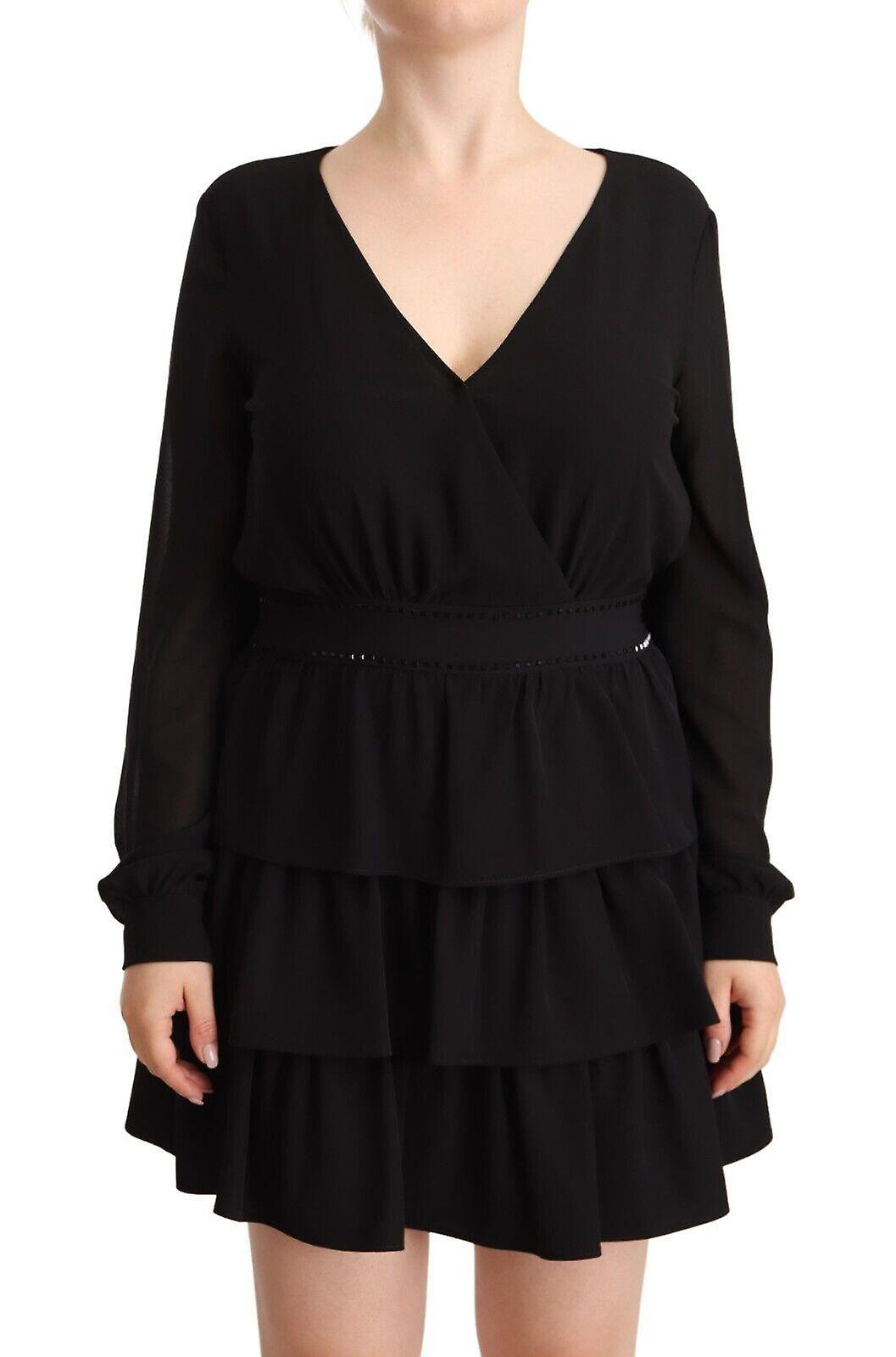 Liu Jo Black Polyester Long Sleeves V-neck Mini A-line Dress