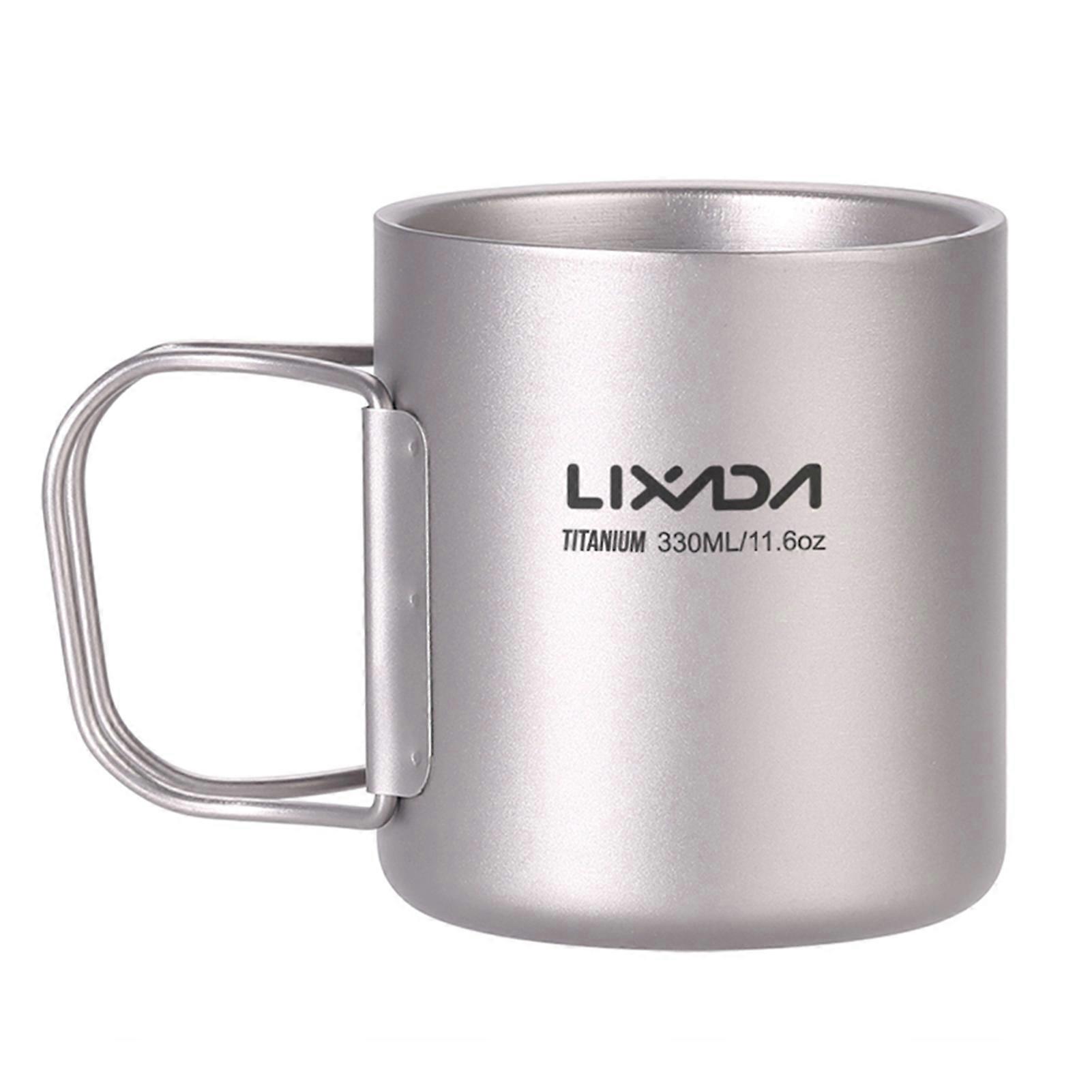 Lixada 330ml Double Wall Titanium Water Cup Coffee & Tea Cup for Home Outdoor Camping Hiking Backpack Picnic