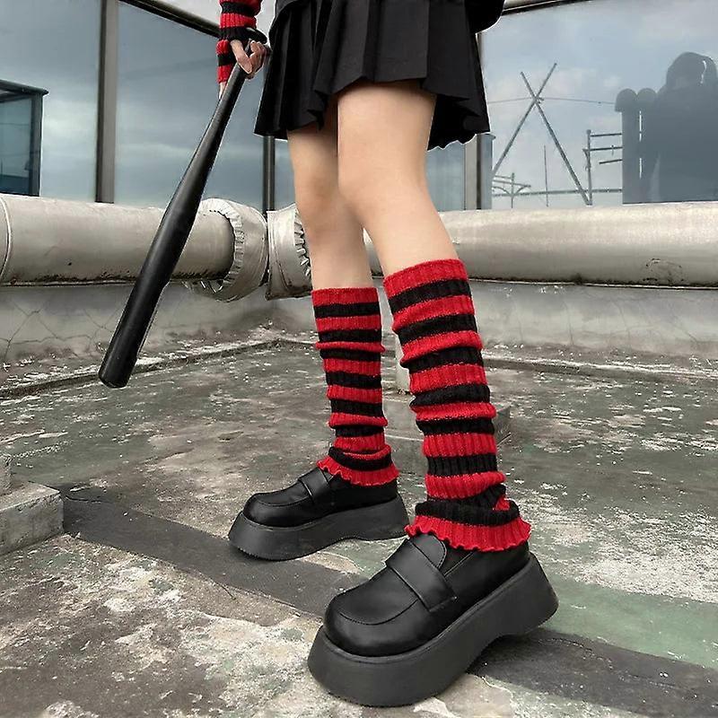 Lolita Striped Long Socks & Arm Warmers Red Black Crochet Leg Warmers Boot