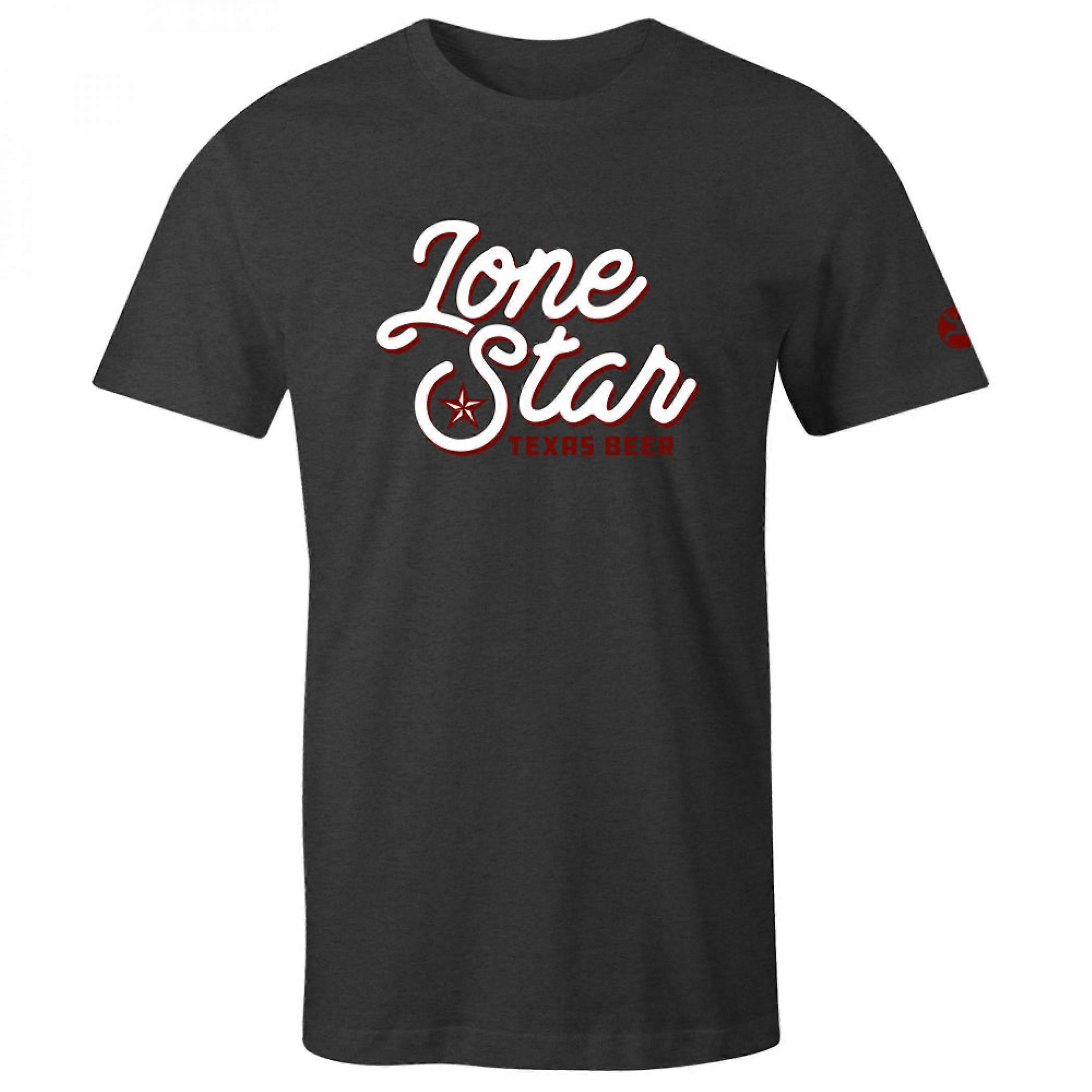 Officially licensed Lone Star Beer Cursive Logo T-Shirt. This grey "Lone Star Beer" t-shirt is made from cotton and features a cool "Lone Star Beer" cursive logo design printed on the front. All sizes are US sizes.