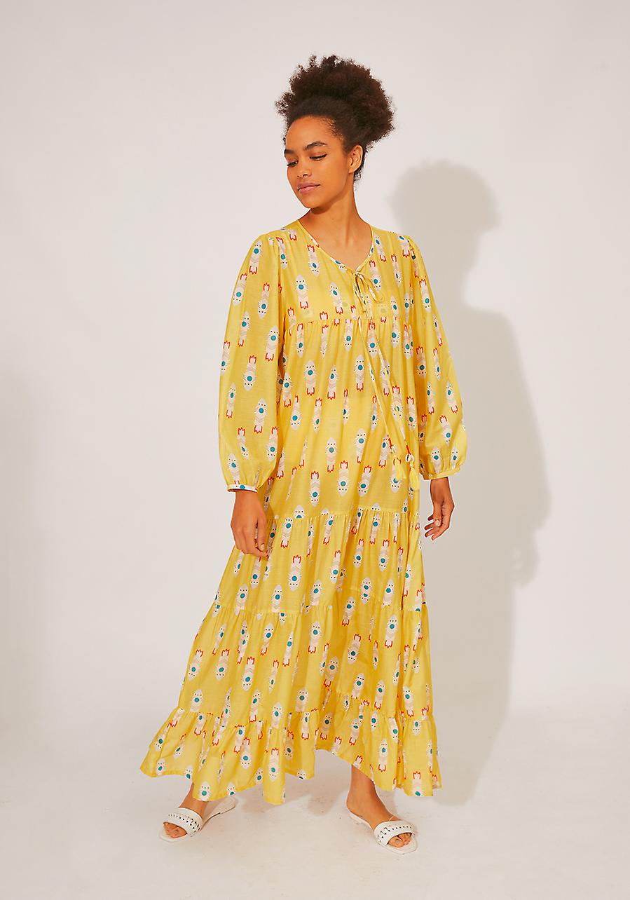 Long Beachwear Dress with Slit Yellow Rocket Print BA21PUN02 by Compania Fantastica