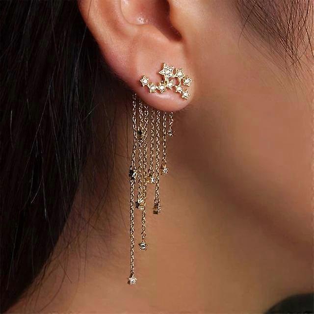 Long Crystal Tassel Earrings-Gold Star Design for Women by Gold