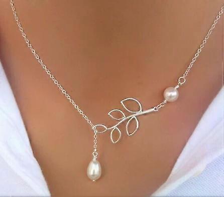 Long Silver Pendant Necklace-Chic Leaf & Pearl Design for Women Leaf and pearl