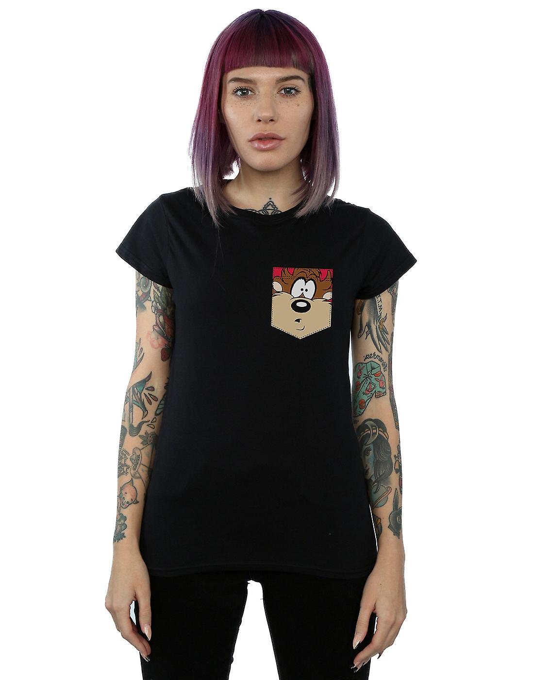 Looney Tunes Women's Tasmanian Devil Face Faux Pocket T-Shirt