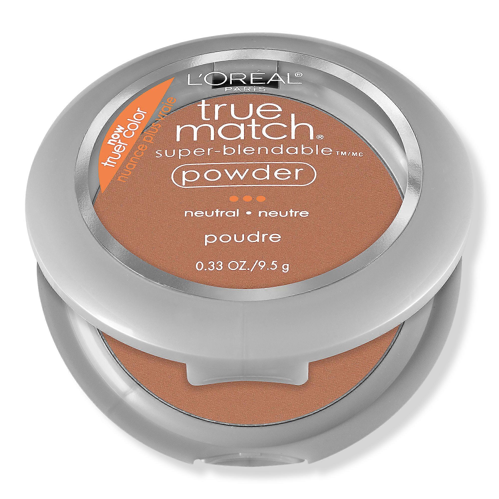 L'Oréal True Match Super Blendable Powder is a non-drying pressed powder that leaves a natural finish on skin. It matches light to dark tones and warm, neutral and cool undertones. Benefits: Micro-fine powder with lightweight, soft texture Won't settle into lines or cake throughout the day Minimizes the appearance of pores Improves skin tone evenness and texture Features: Available in Super Blendable Shades to match your unique skin tone and undertone Provides color that stays true all day long Leaves skin comfortable Ingredients Talc, Nylon-12, Octyldodecyl Stearoyl Stearate, Zinc Stearate, Boron Nitride, Stearic Acid, Kaolin, Methylparaben, Propylparaben, Tetrasodium EDTA, May Contain: Iron Oxides, Titanium Dioxide, Mica, Bismuth Oxychloride, Carmine, Ultramarines. Suggested Use Using a light touch and the provided applicator, sweep all over the face to create a natural finish and to set makeup and/or concealer.