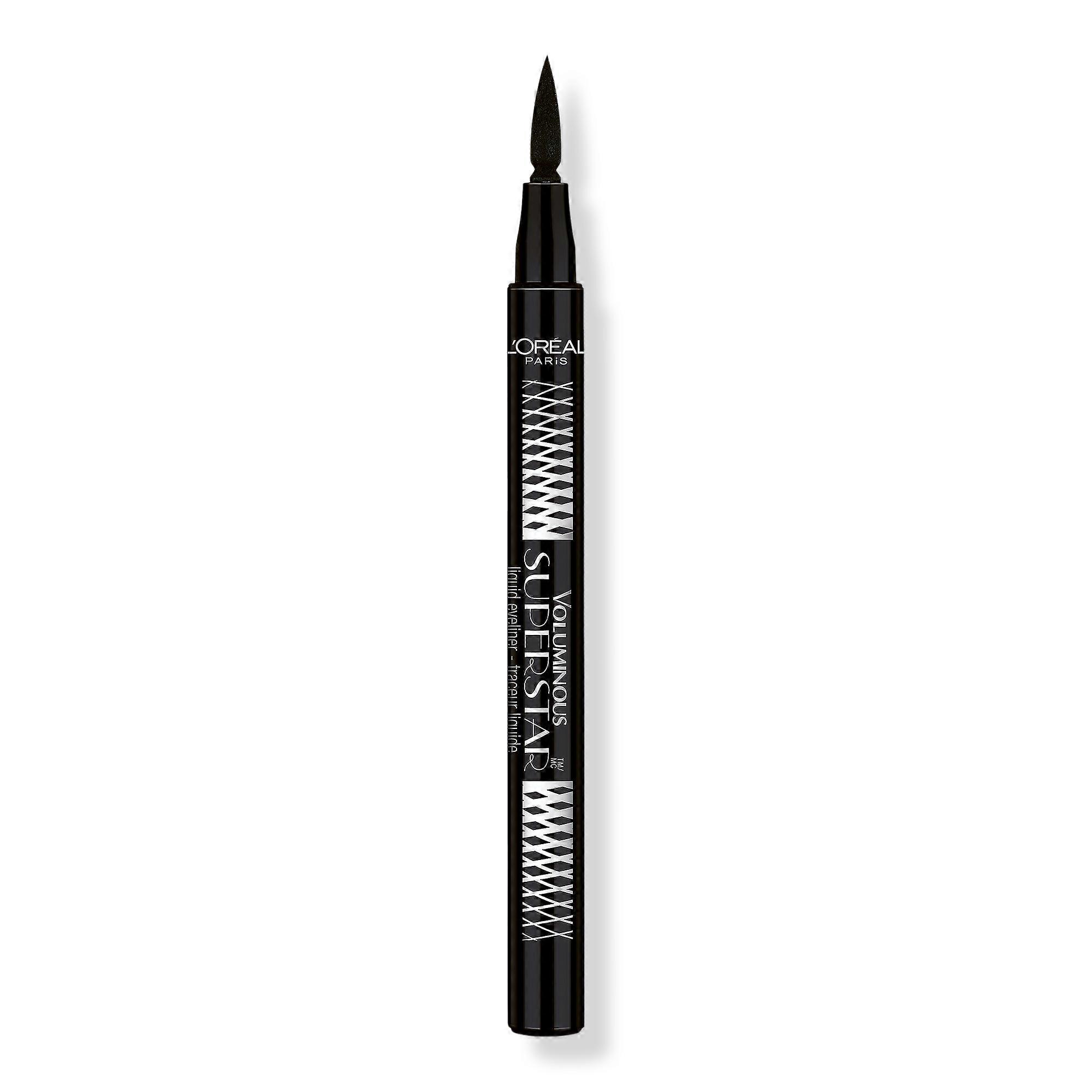 L'Oréal Voluminous Superstar Liner in Black delivers precise ink application for perfect line control. This liquid felt-tip eyeliner provides smooth glide and a smudge-proof finish. Features: Precise ink application Perfect line control Smooth glide Smudge-proof finish Liquid felt-tip eyeliner Suggested Use Apply to a clean eyelid Hold marker horizontally to use the side of the tip Apply along the top lash line, beginning at the inner corner of the eye and working outward At the end of the upper lash line, draw a thin line extending towards the end of the brow Ingredients Information not provided in the original content.