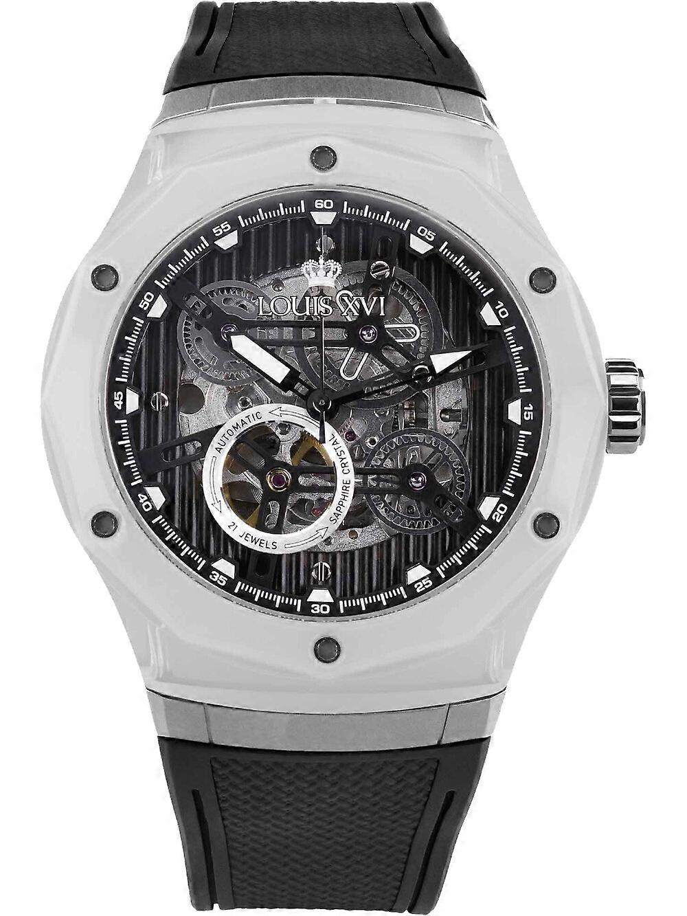 Marke: LOUIS XVI • Hersteller-Nr.: LXVI3821 • Hersteller Serie: La Lumière Automatik 45mm 5ATM • Funktionen: Minute, Sekunde, Stunde • Antrieb: Automatik • Uhrwerk Bezeichnung: Miyota, Japan, 82S0 • Zifferblatt Farbe: Schwarz • Anzeige: Analog • Wasserdichte: 5 ATM • Lünette: Feststehend • Oberfläche: Mattiert, Poliert • Gehäuse Farbe: Transparent, Weiß • Gehäuse Material: Edelstahl, Kunststoff • Gehäusedicke: 13 mm • Limitiert: Ja, X / 5000 • Gehäuse Form: Rund • Gehäusebreite: 45 mm • Gehäuseboden: Glasboden, verschraubt • Geschlecht: Herren • Glas: entspiegelt, Saphirglas • Beleuchtung: Leuchtindexe, Leuchtzeiger • Stil: Klassisch • Armband Material: Kautschuk • Armband Farbe: Schwarz • Bandanstoßbreite: 27 mm • Schließe: Dornschließe • Max. Handgelenkumfang: 220 mm • EAN: 7640172149089 • Artikelgewicht: 0.12 kg ★★★ To our non EU customers: logistics will request local tax from you + a little service fee ★★★