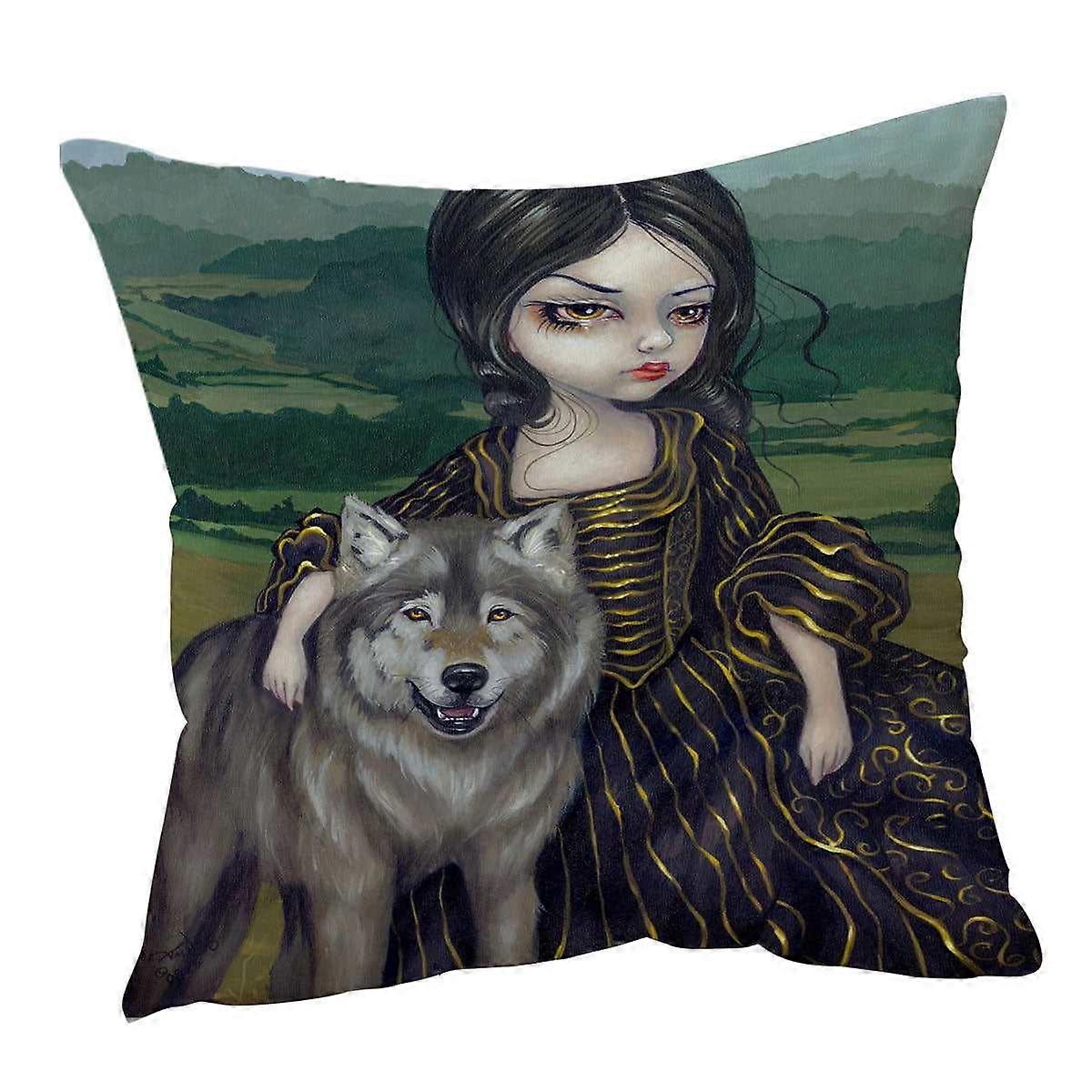 Loup Garou Fine Art Landscape Wolf and Lady Cushion Cover