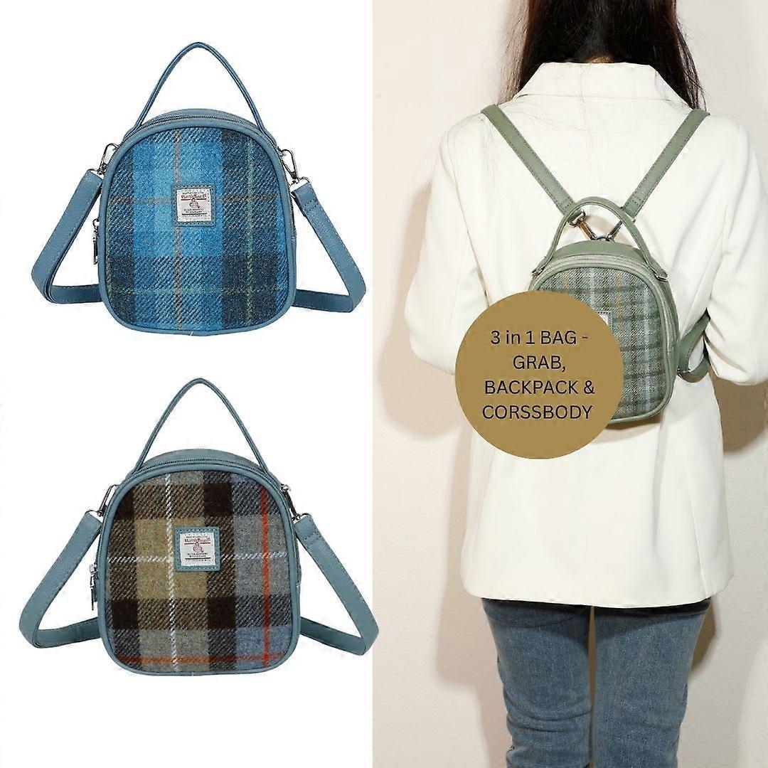 Love EMVY Signature Tweed Collection Mini 3-in-1 Backpack/Crossbody/Grab Bag Crafted in Genuine Harris Tweed Wool Fabric with Faux Leather Trim 21